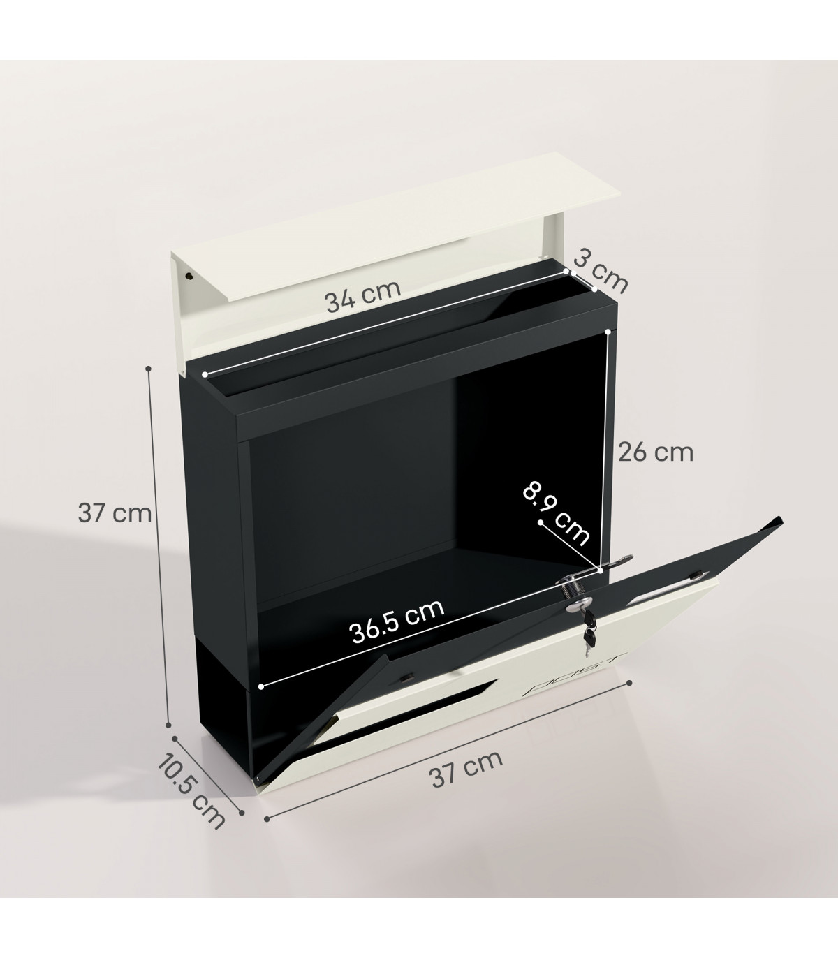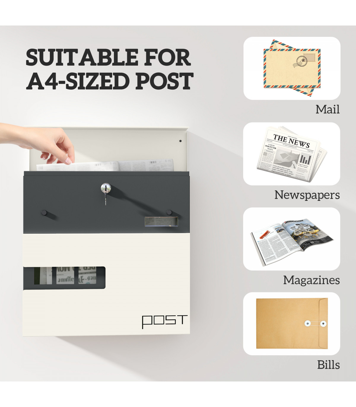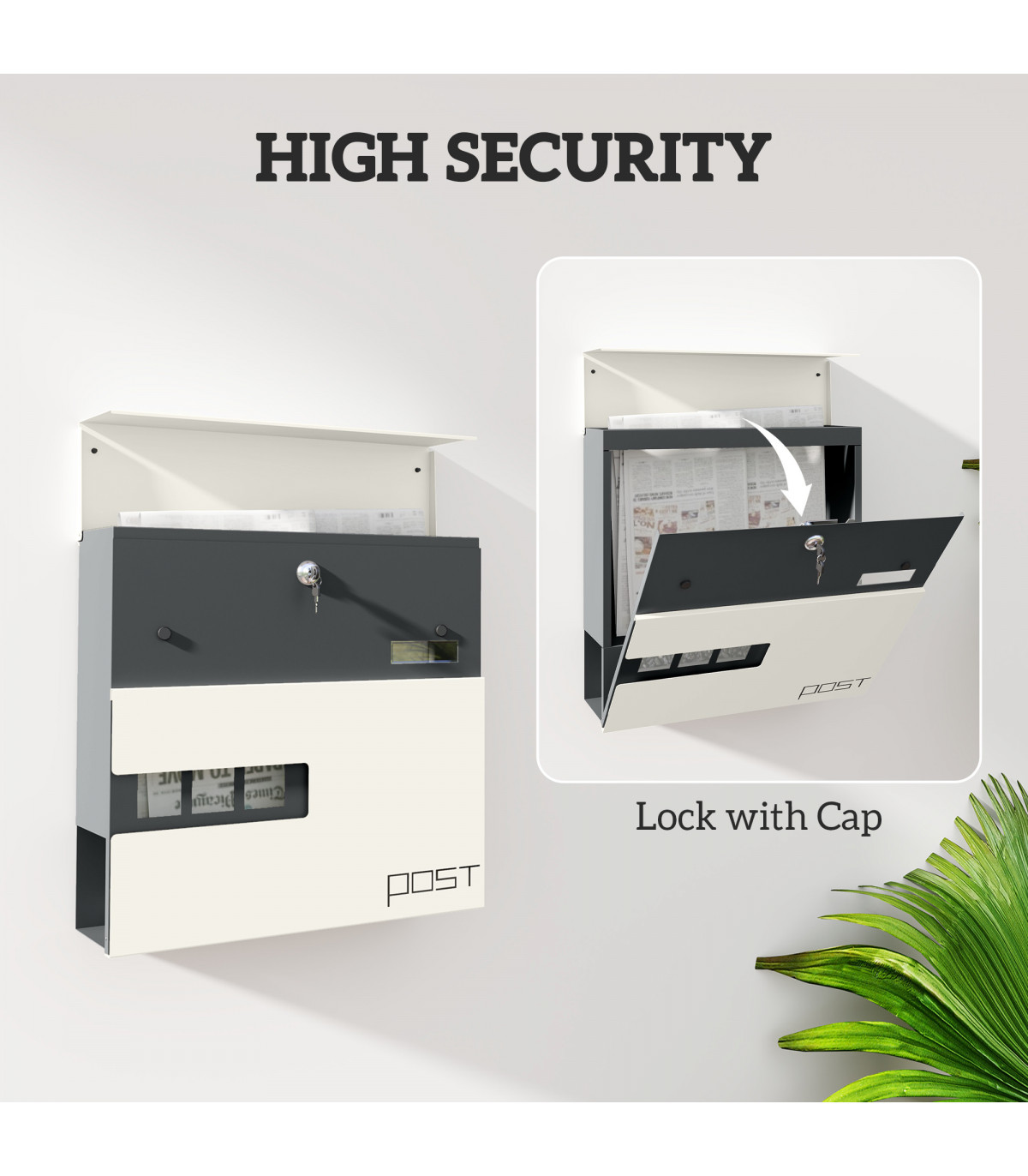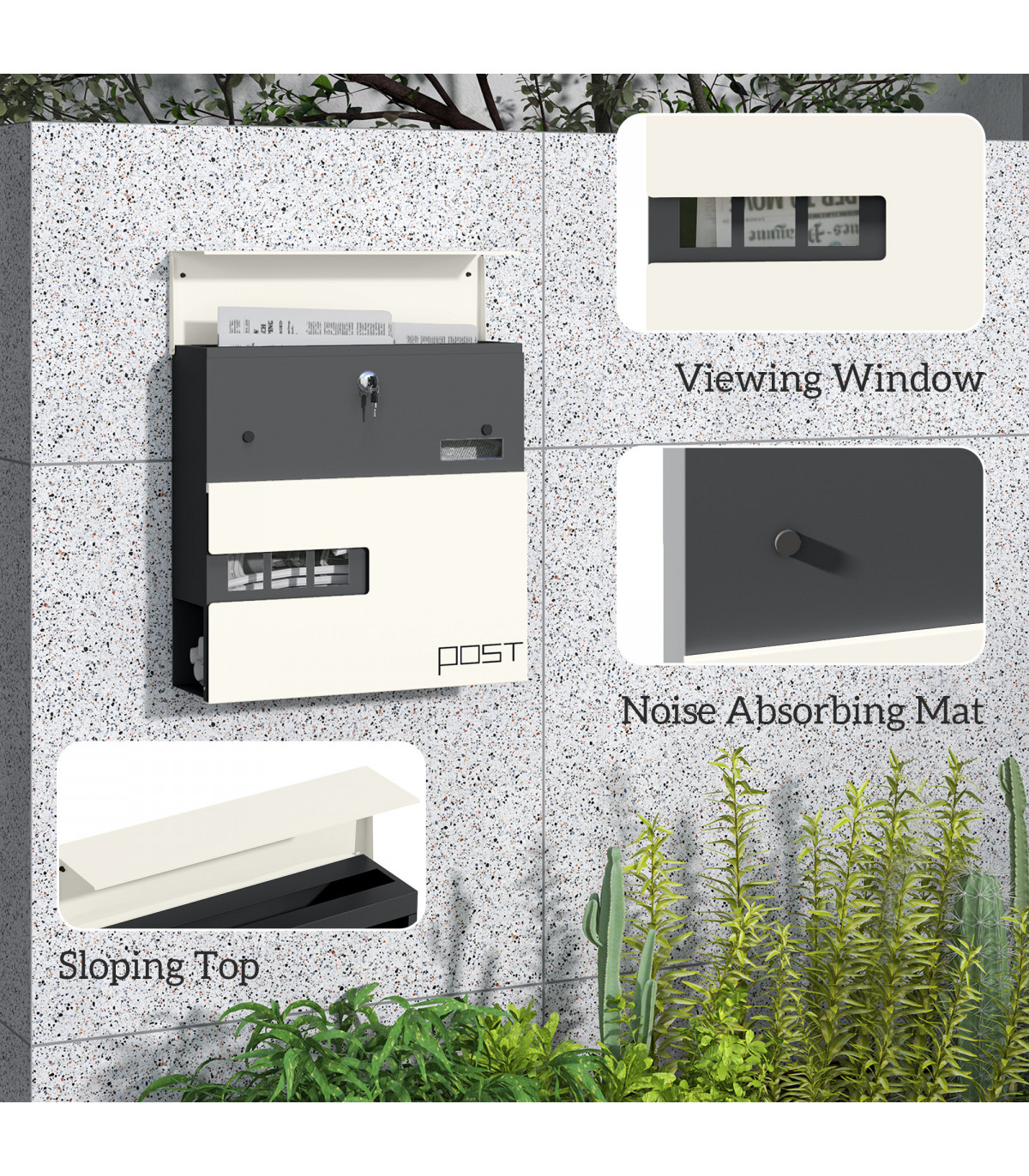 HOMCOM Wall Mounted Post Box, Weatherproof Letterbox with Lock, White