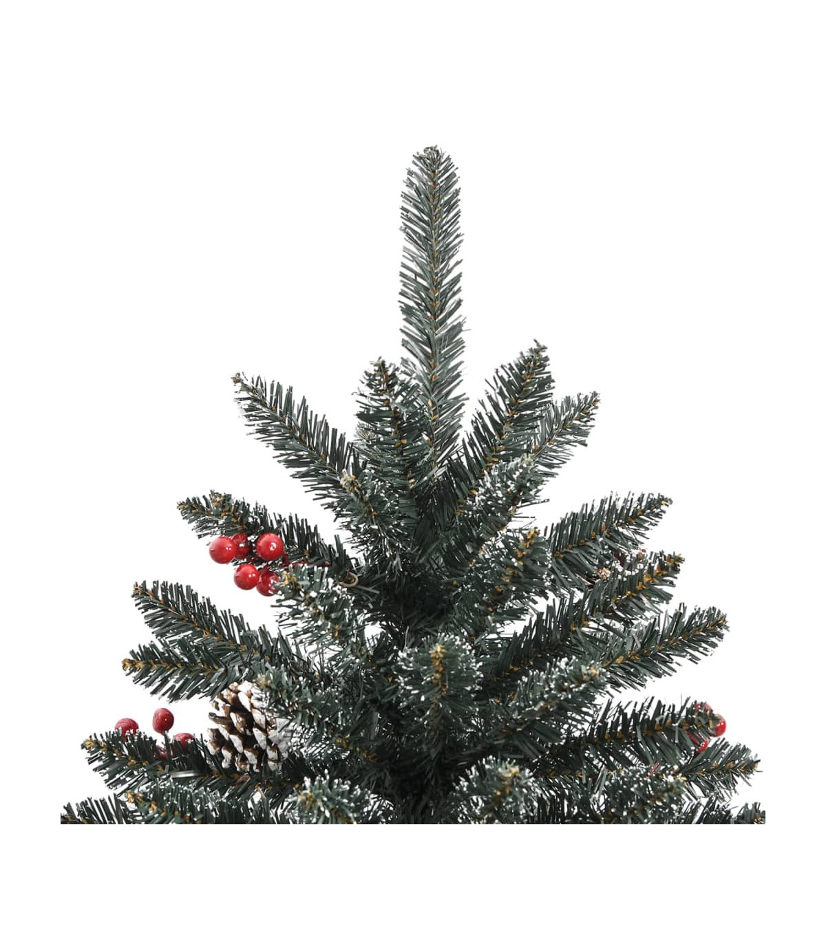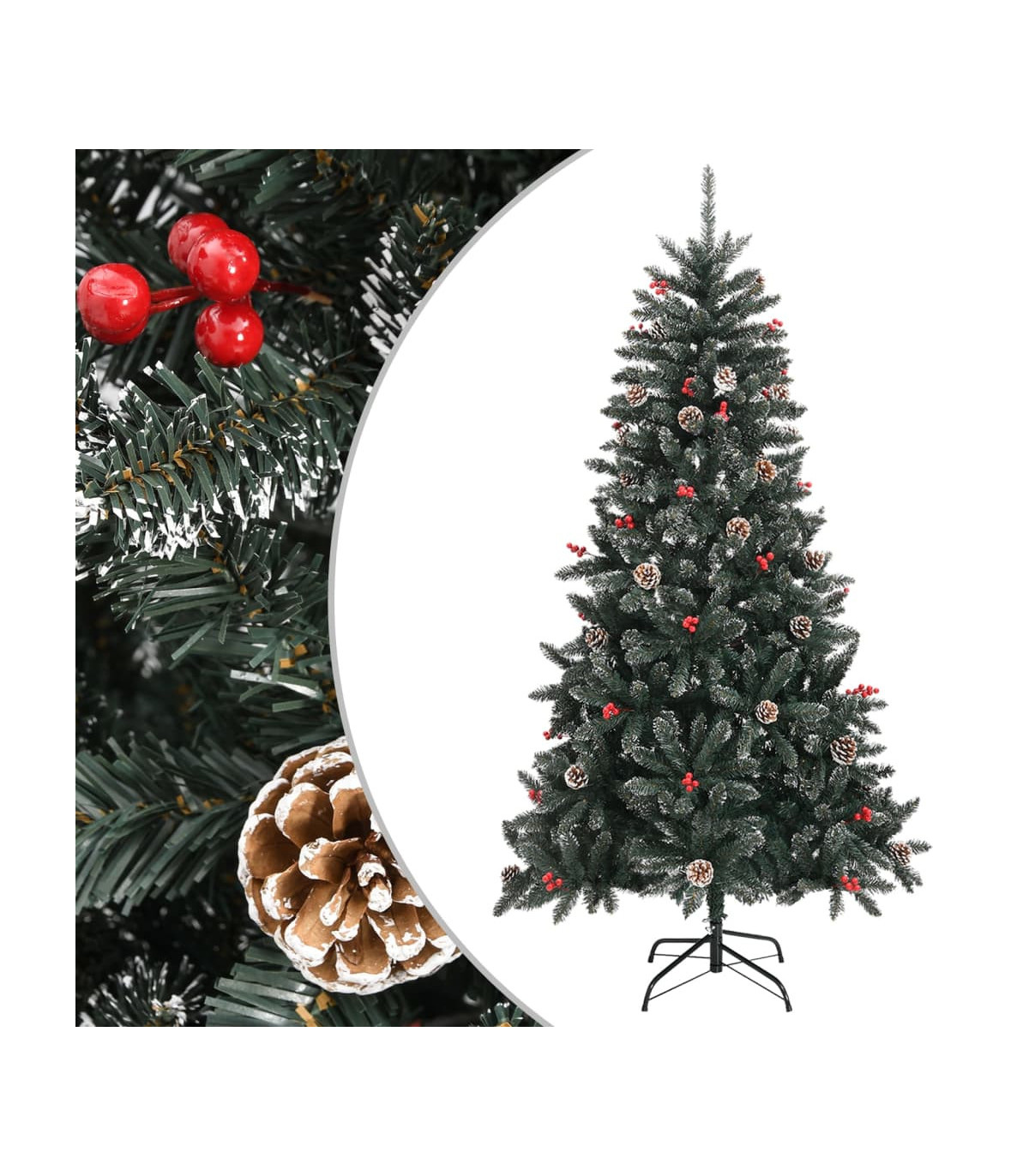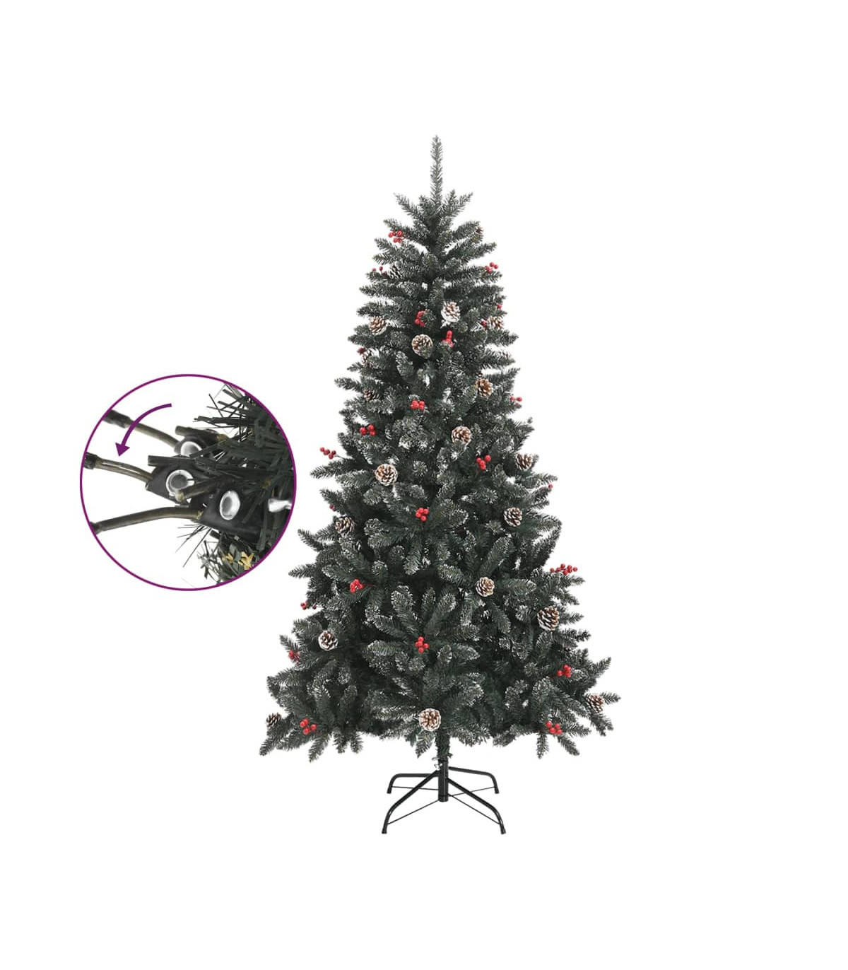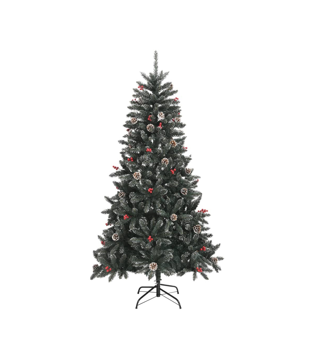 This lovely and lifelike artificial Christmas tree with distinctive tips will become the focal point of your holiday decorations. Hinged construction: This luxury tree has a hinged construction, so the branches will automatically fold down in the right angle. This will make it much easier to put up the tree in the perfect shape, and will save you time as well.Bushy Christmas tree: The Christmas tree is designed with a lot of beautiful PVC tips, giving the tree a beautiful realistic look along with a bushy appearance.Sturdy stand: The artificial tree is made of a sturdy steel stand, which provides the tree with optimal stability.Beautiful decoration: The Christmas tree even comes with cones and berries on it, offering a wonderful natural effect. It is decorated with artificial white snow to create a unique wintery feel.Lasting durability: The Xmas tree can be used again every year, making it a very economical choice compared to a real tree. Note:Each product comes with an assembly manual in the box for easy assembly.