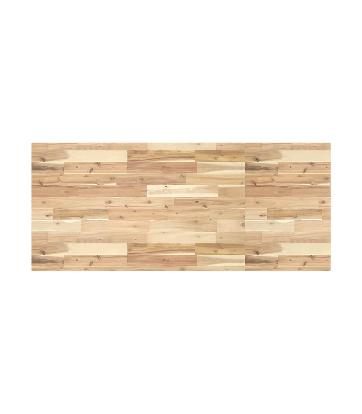 This wooden desk top is ideal for freshening up your desks while bringing a natural atmosphere. Robust and stable material: Solid acacia wood is known for its strength and durability. Its diverse colours and unique grain patterns give it an attractive appearance. With excellent stability and resistance to weathering, it is ideal for crafting indoor and outdoor furniture.Untreated surface: This countertop is made of untreated acacia wood, and you can keep its natural colour or customize it with paint or lacquer to suit your preference.Versatile use: This multi-functional countertop can be paired with different bases for a range of uses, such as a kitchen workstation, garage workbench, or bathroom vanity top.Easy maintenance: Thanks to its smooth surface, the worktop is easy to clean with a damp cloth and requires less maintenance. Good to know:Each item is unique with variations in colours and grains. The delivery is random, ensuring the exclusivity and individuality of your product.