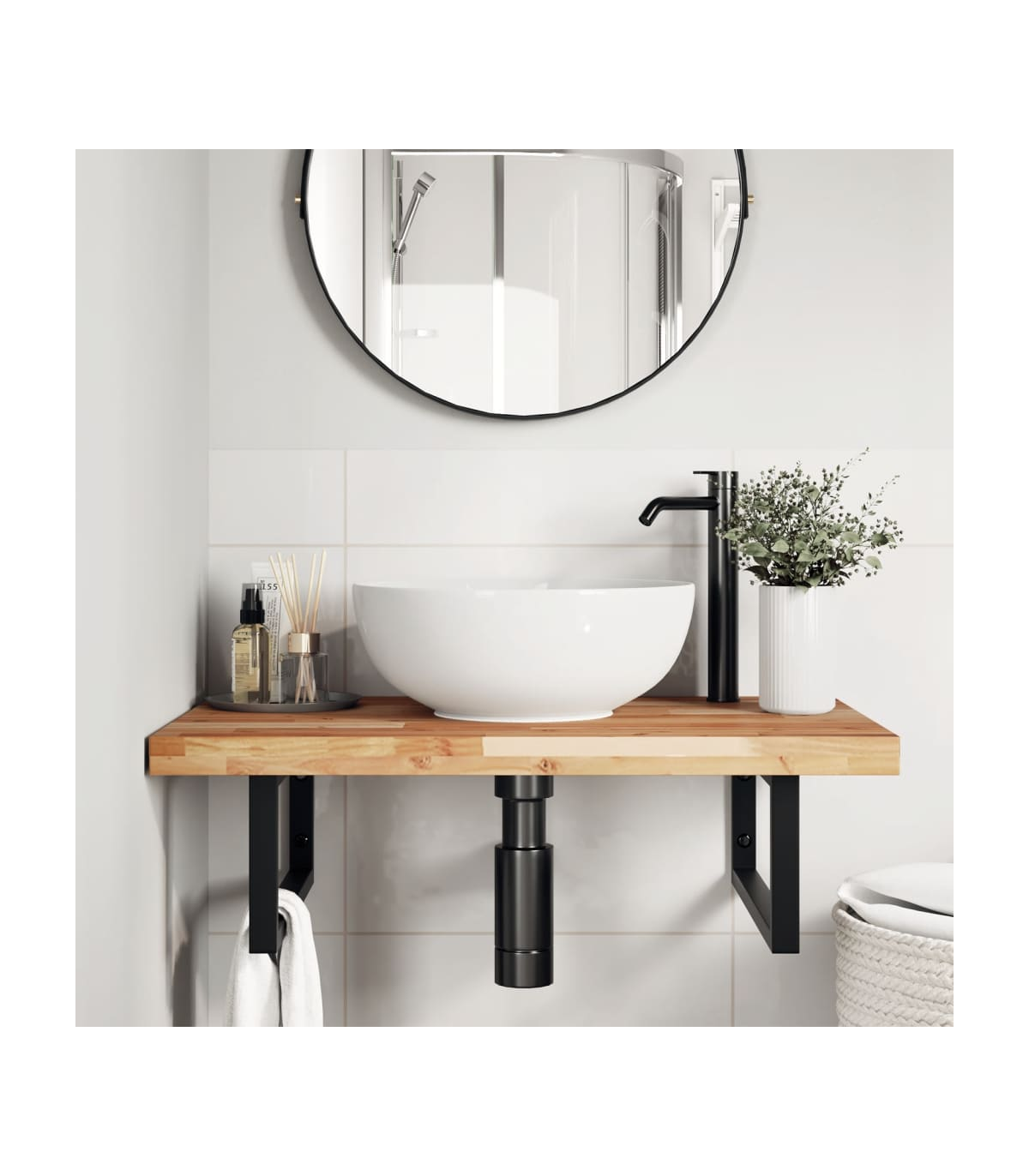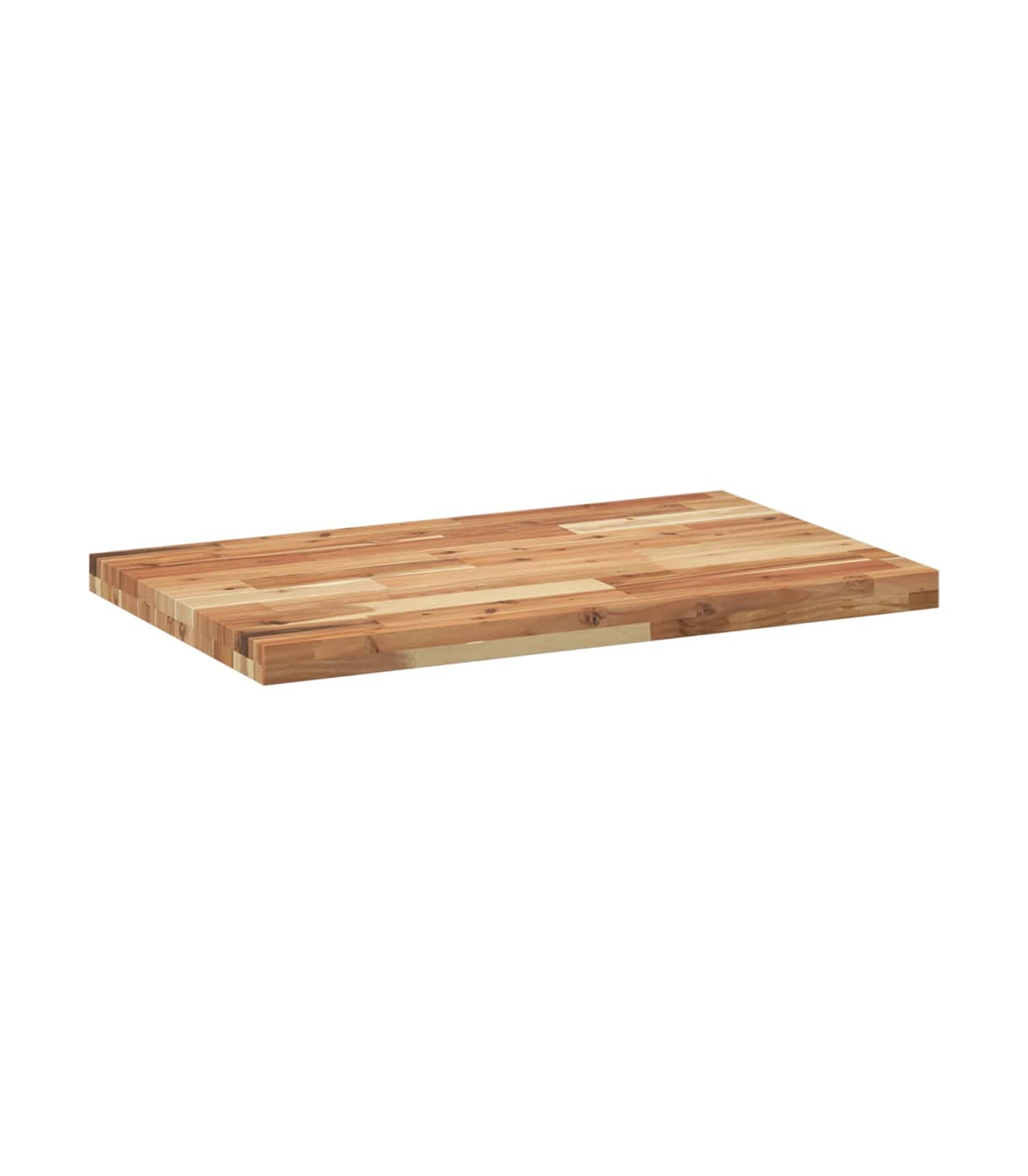 Upgrade your bathroom with this wooden bathroom vanity top for a touch of rustic charm! Robust and stable material: Solid acacia wood is known for its strength and durability. Its diverse colours and unique grain patterns give it an attractive appearance. With excellent stability and resistance to weathering, it is ideal for crafting indoor and outdoor furniture.Untreated surface: This countertop is made of untreated acacia wood, and you can keep its natural colour or customise it with paint or lacquer to suit your preference.Versatile use: This multi-functional countertop can be paired with different bases for a range of uses, such as a kitchen workstation, garage workbench, bathroom shelf or desk top.Easy maintenance: Thanks to its smooth surface, the worktop is easy to clean with a damp cloth and requires less maintenance. Good to know:Each item is unique with variations in colours and grains. The delivery is random, ensuring the exclusivity and individuality of your product.
