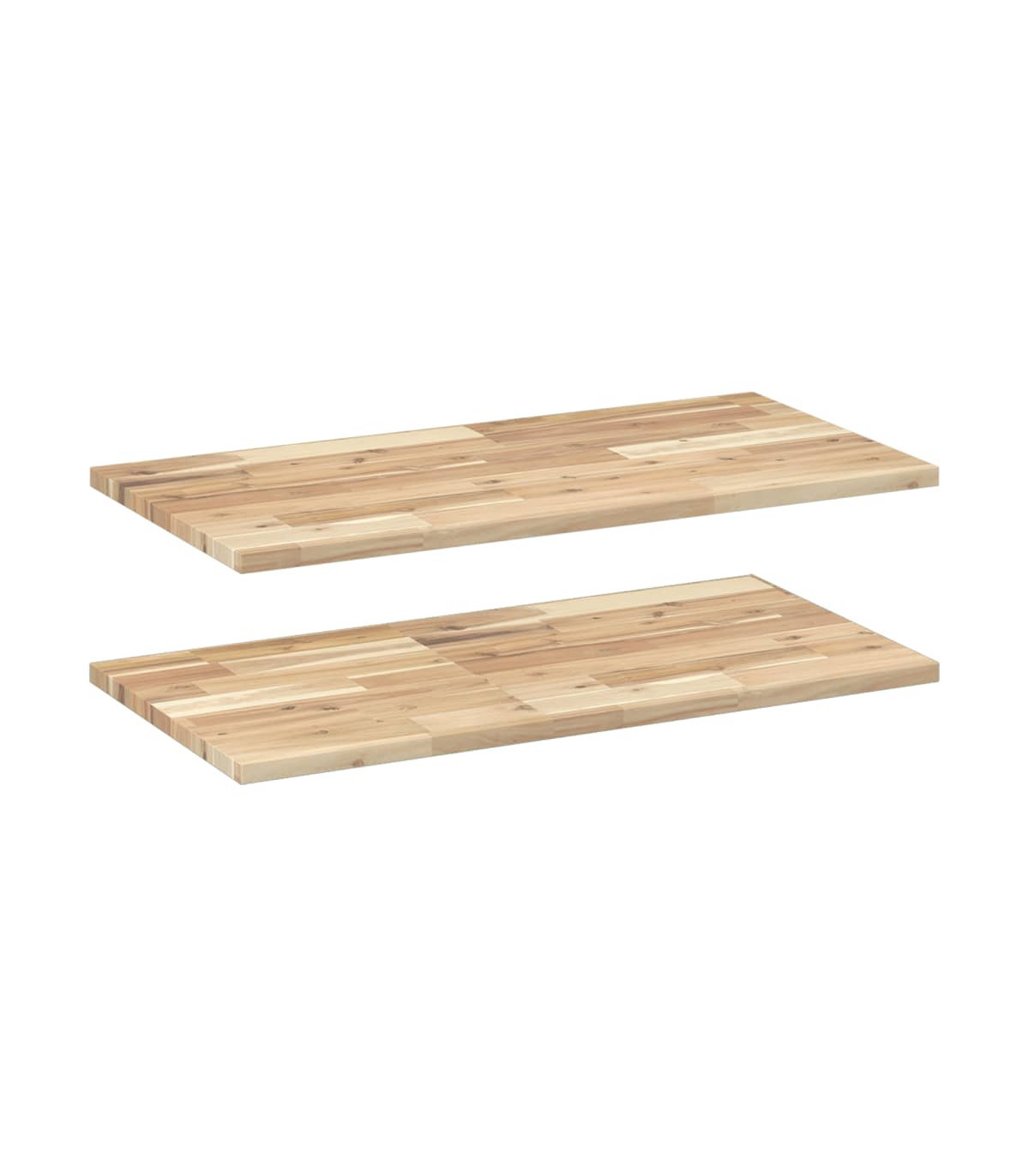Transform your bare wall into a design accent and a practical, space-efficient storage area for your living space with these wooden floating shelves! Robust and stable material: Solid acacia wood is known for its strength and durability. Its diverse colours and unique grain patterns give it an attractive appearance. With excellent stability and resistance to weathering, it is ideal for crafting indoor and outdoor furniture.Untreated surface: This shelf board is made of untreated acacia wood, and you can keep its natural colour or customise it with paint or lacquer to suit your preference.Randomly DIY: You can arrange the shelves in a random pattern, like right-left, upper-down, or in a ladder-like design. By using more wall shelves, you can create unique and personalised patterns.Space saving: This floating shelf maximises unused wall space, converting it into a compact and efficient storage area.Wide applications: This versatile wall-mounted shelf can be used in various settings, such as kitchen, bathroom, living room, bedroom, study, garage, etc. Good to know:Each item is unique with variations in colours and grains. The delivery is random, ensuring the exclusivity and individuality of your product.The delivery includes wall shelves only. Screws and brackets are not included in the delivery.