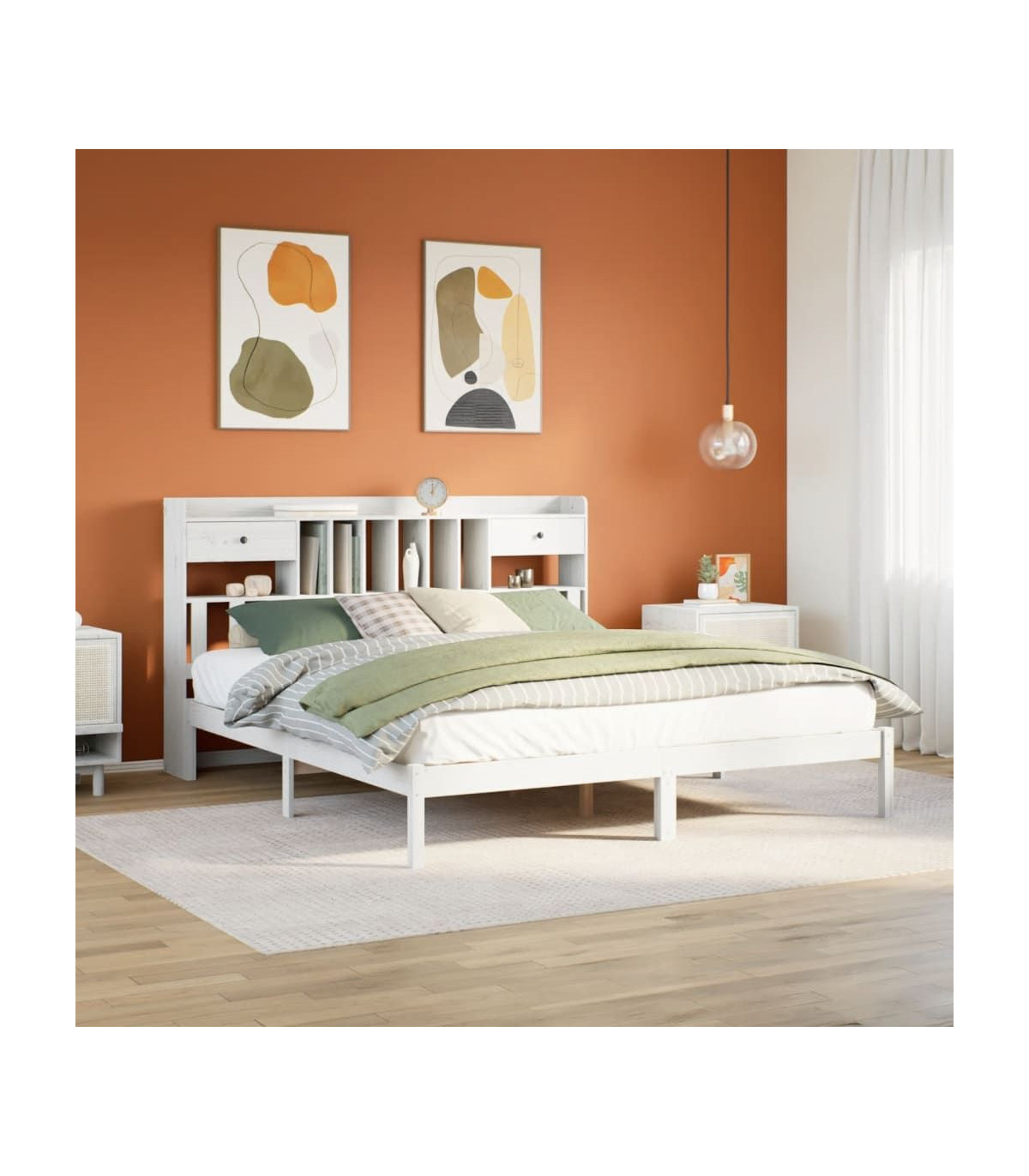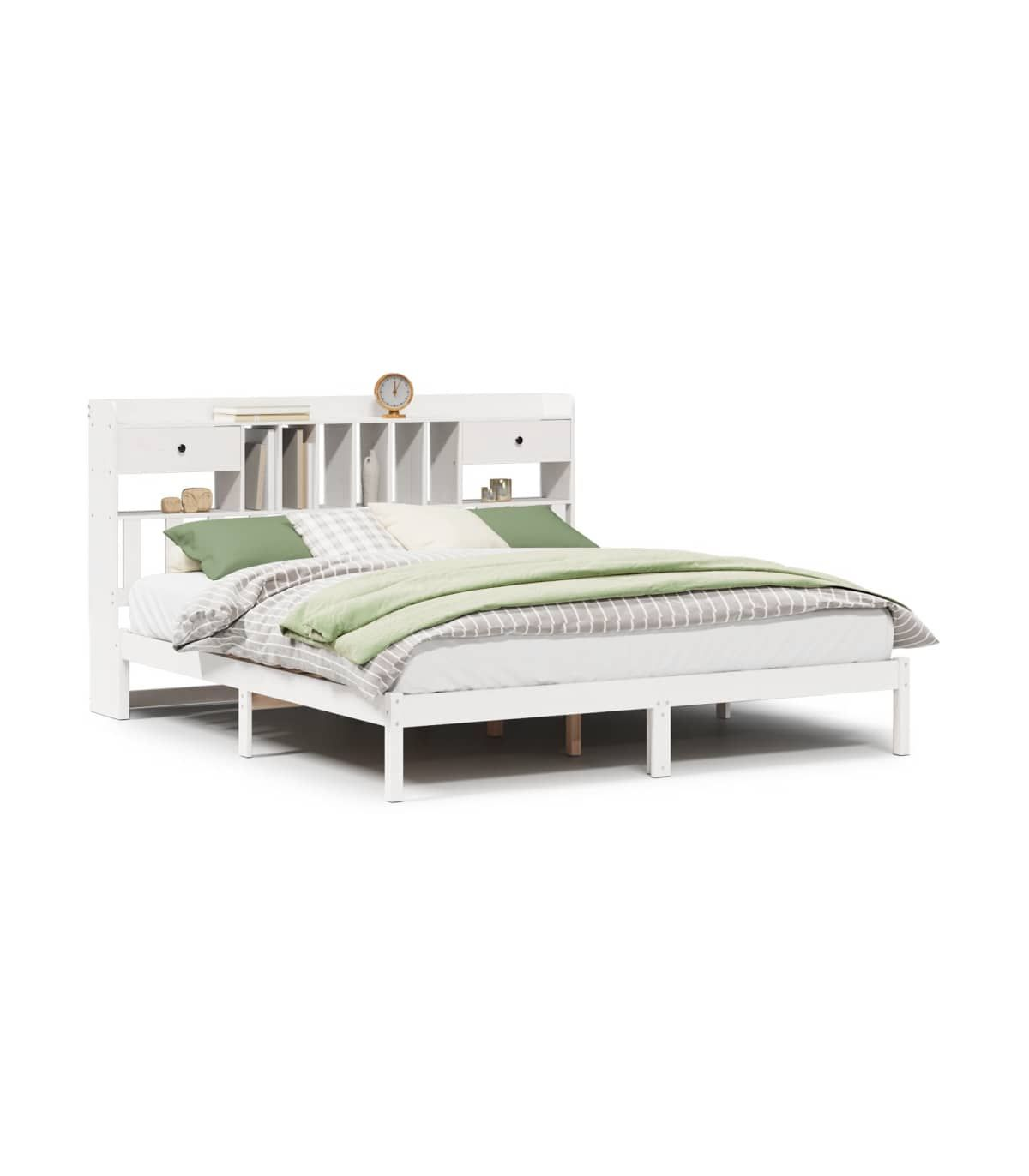 vidaXL Bookcase Bed without Mattress White 180x200 cm Super King Solid Wood Pine