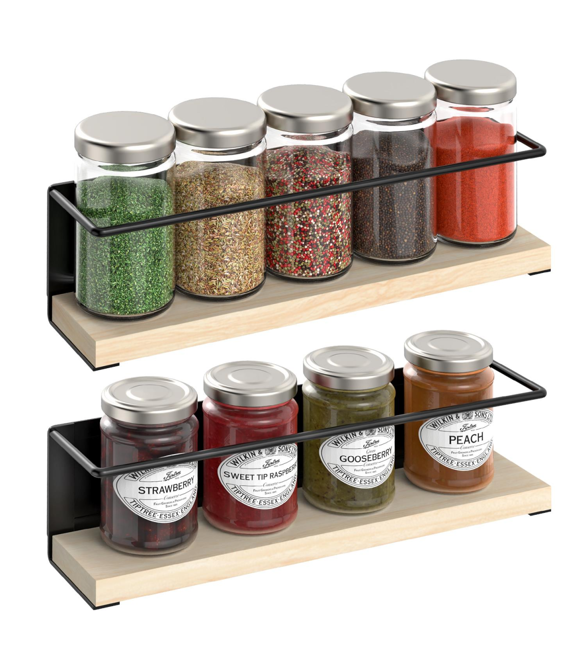 VINSANI 2pc MAGNETIC SPICE RACK WOODEN SHELF 1010420