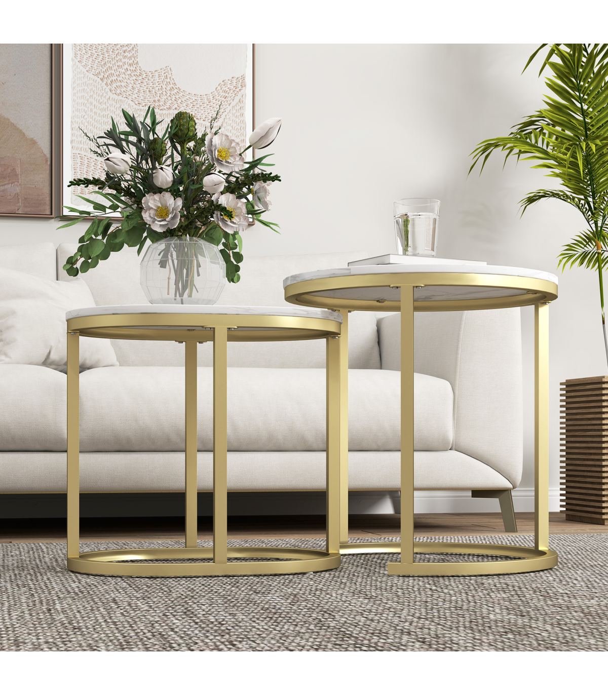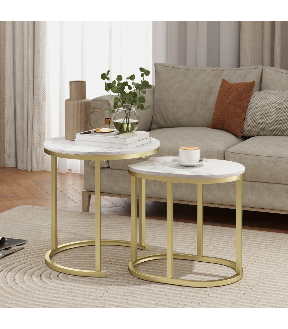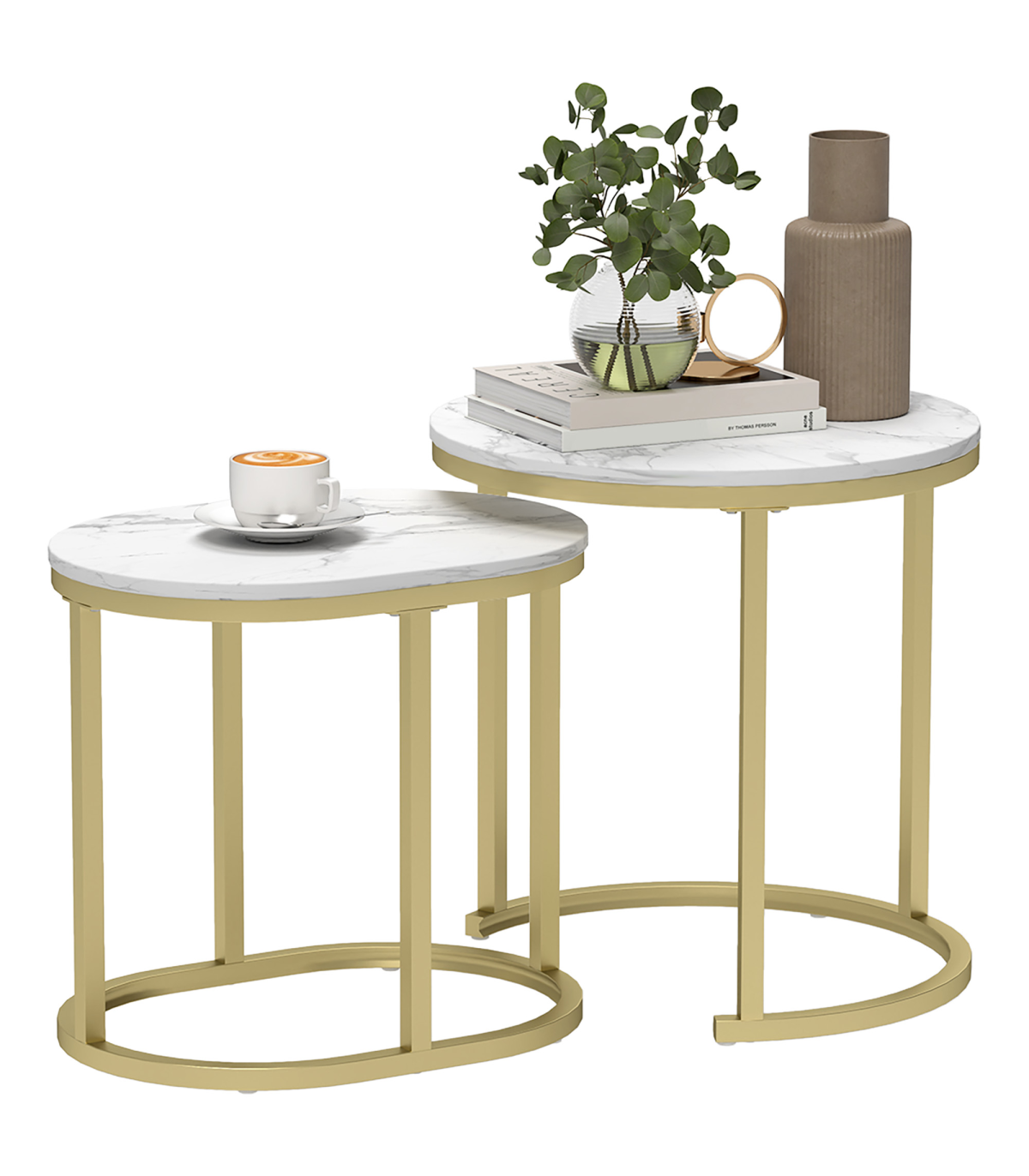 Enhance your living space with our elegant marble-effect side table set, featuring both a round and an oblong table. These stylish accent tables are perfect for various settings, allowing you to create a sophisticated look while offering functional space-saving options.