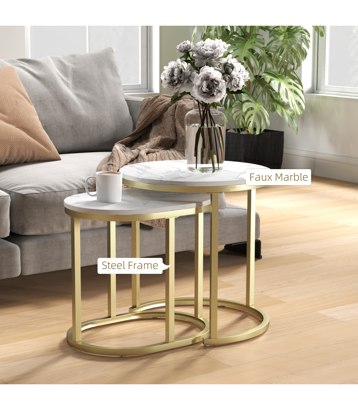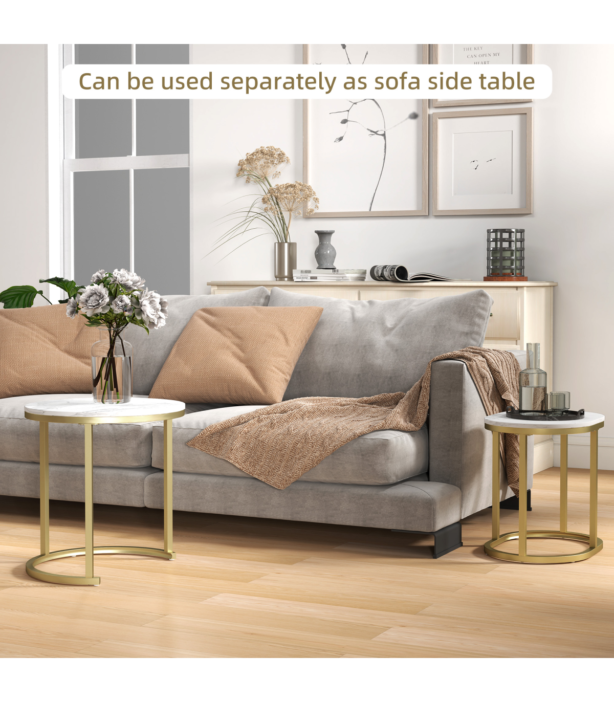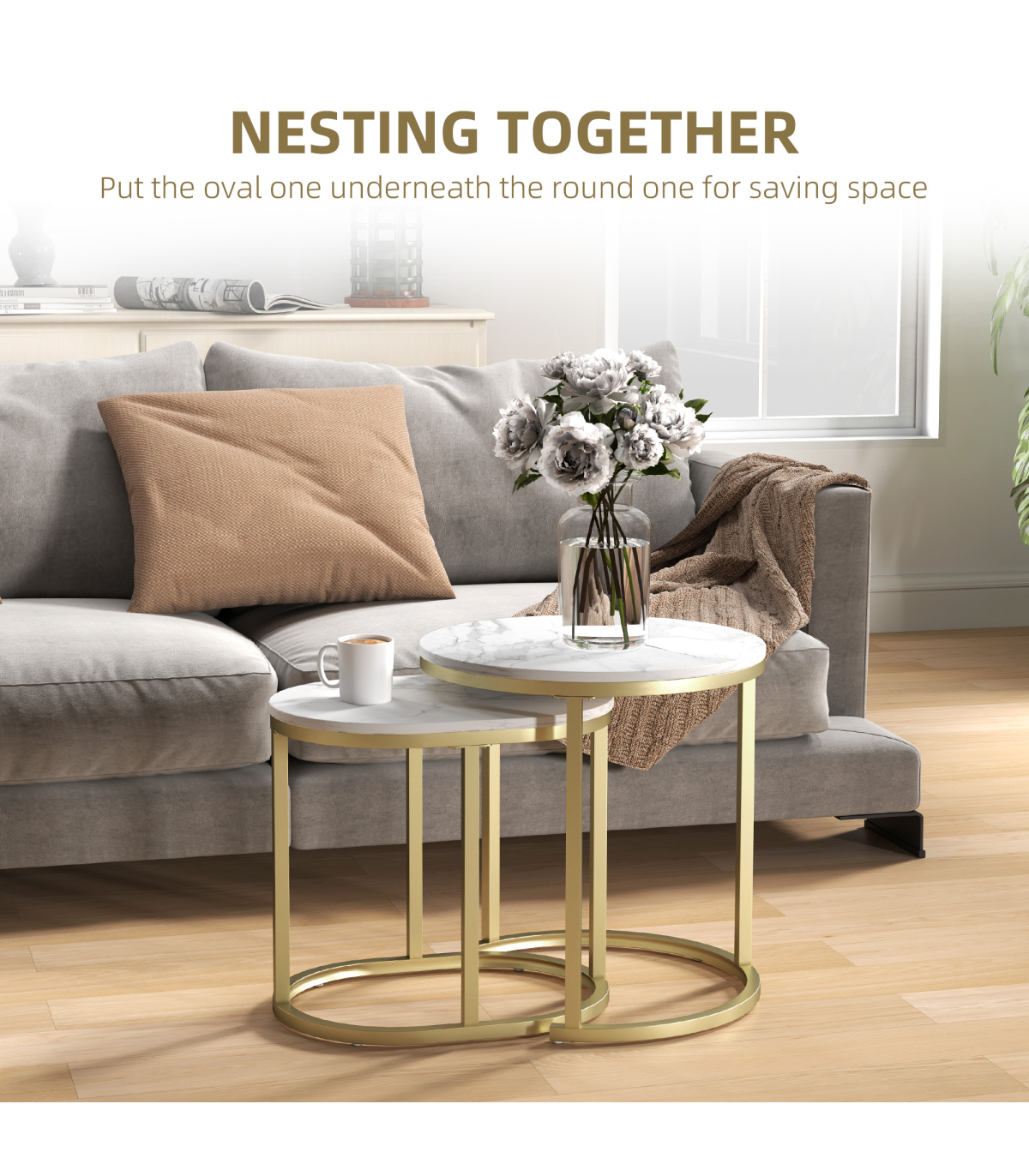 Enhance your living space with our elegant marble-effect side table set, featuring both a round and an oblong table. These stylish accent tables are perfect for various settings, allowing you to create a sophisticated look while offering functional space-saving options.
