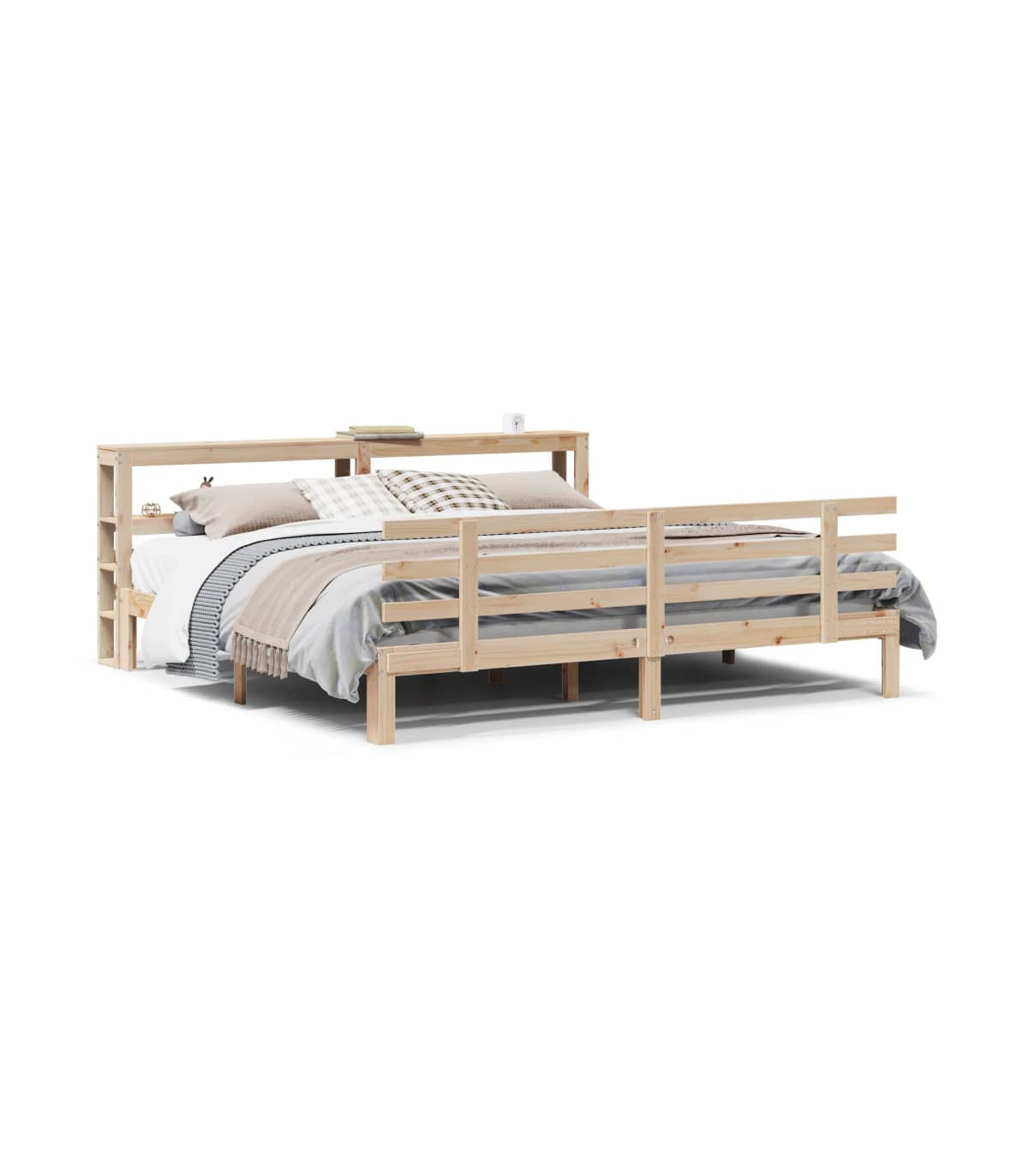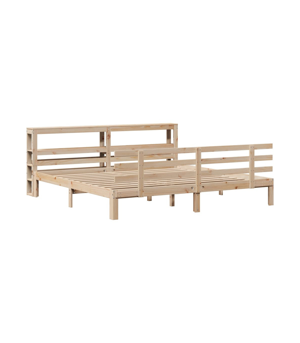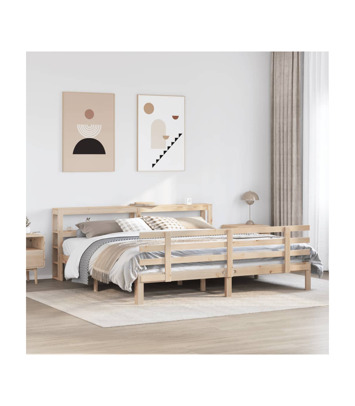 Enjoy a good night's sleep in this wooden bed frame! It makes a practical and decorative addition to your interior. Solid pine wood: Solid pine wood is a beautiful natural material. Pine wood has a straight grain, and the knots give the material its signature, rustic look.Sturdy bed frame: The wooden frame ensures sturdiness and stability. The plywood slats provide good weight distribution, ensuring that the mattress stays in place with every twist and turn of your body during sleep.Functional headboard and footboard: The headboard and footboard of the wooden bed can keep your mattress in place. Also, the headboard provides you with excellent back support when you sit up in bed to read or watch TV.Ample storage space: This sleek headboard features two convenient shelves, offering ample storage space to keep all your nighttime essentials within easy reach. Good to know:A mattress is not included with this bed. We do offer a various selection of mattresses. You can check our shop for a matching mattress.