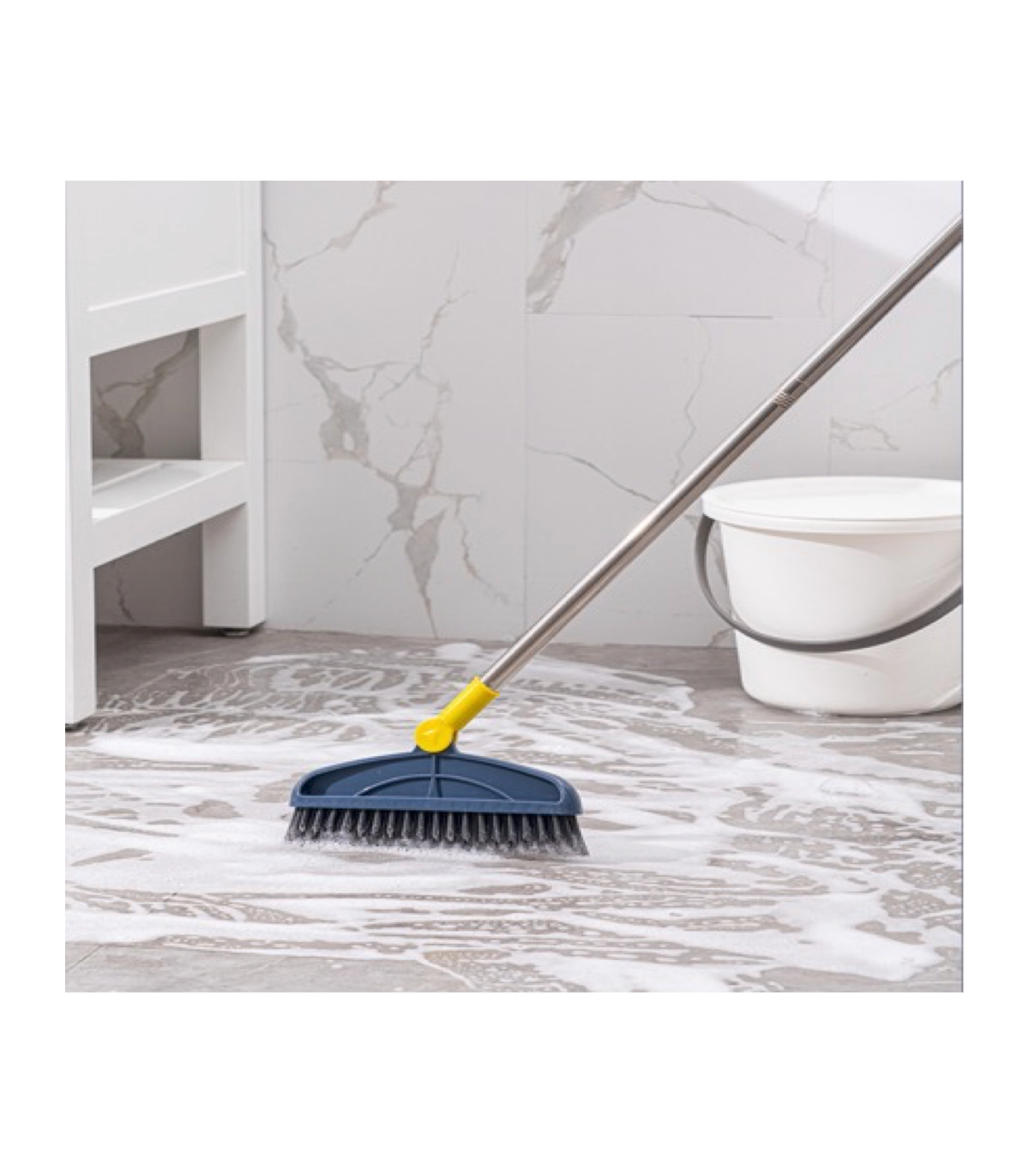 Simply dampen the floor surface then scrub the floor, reaching right into the corners and gaps. Flip the head over and use the squeegee function to scrape clean. Ideal for hard floors, kitchens, bathrooms, patios and more. Measures 123cm H x 23cm W x 5cm D