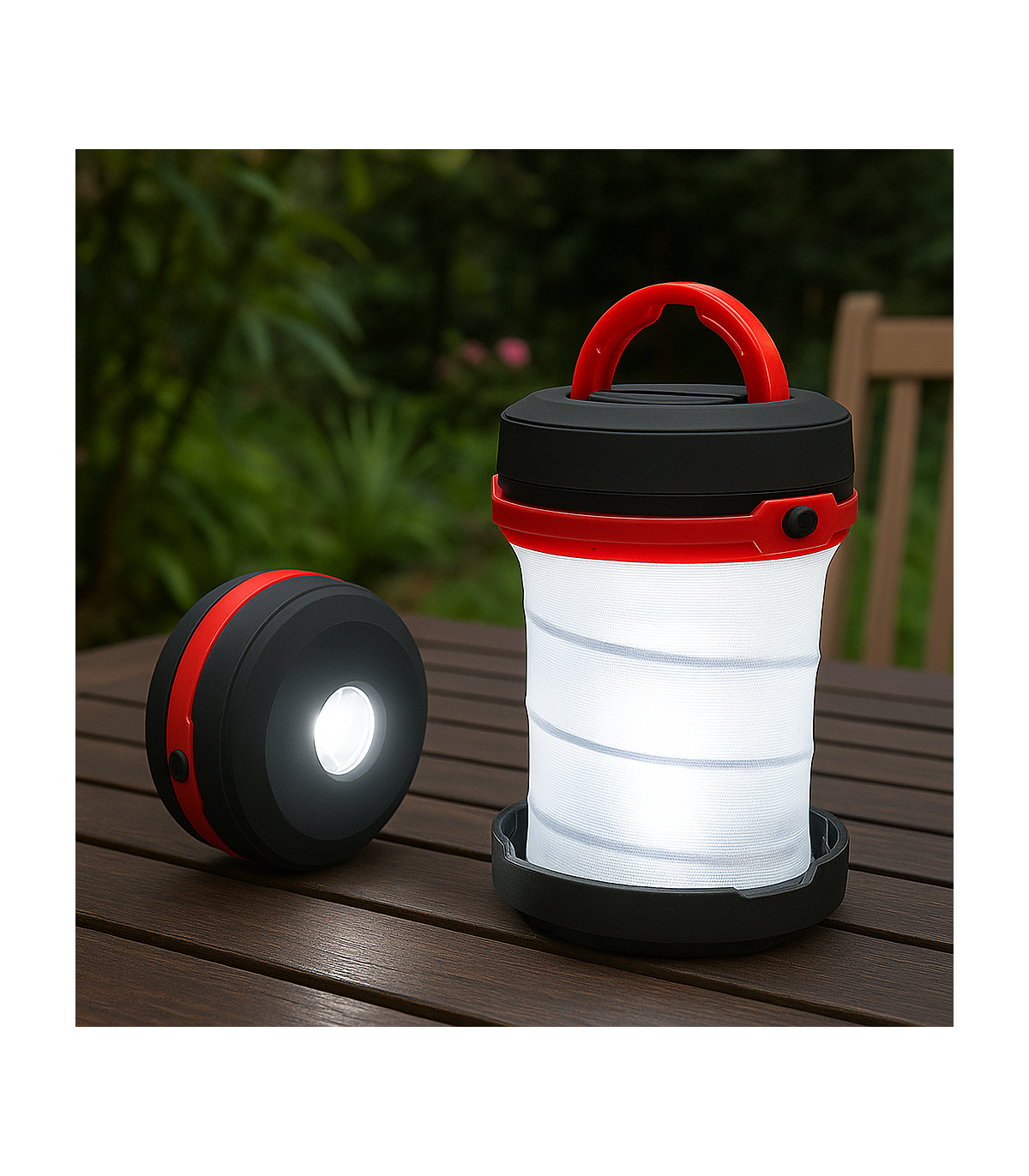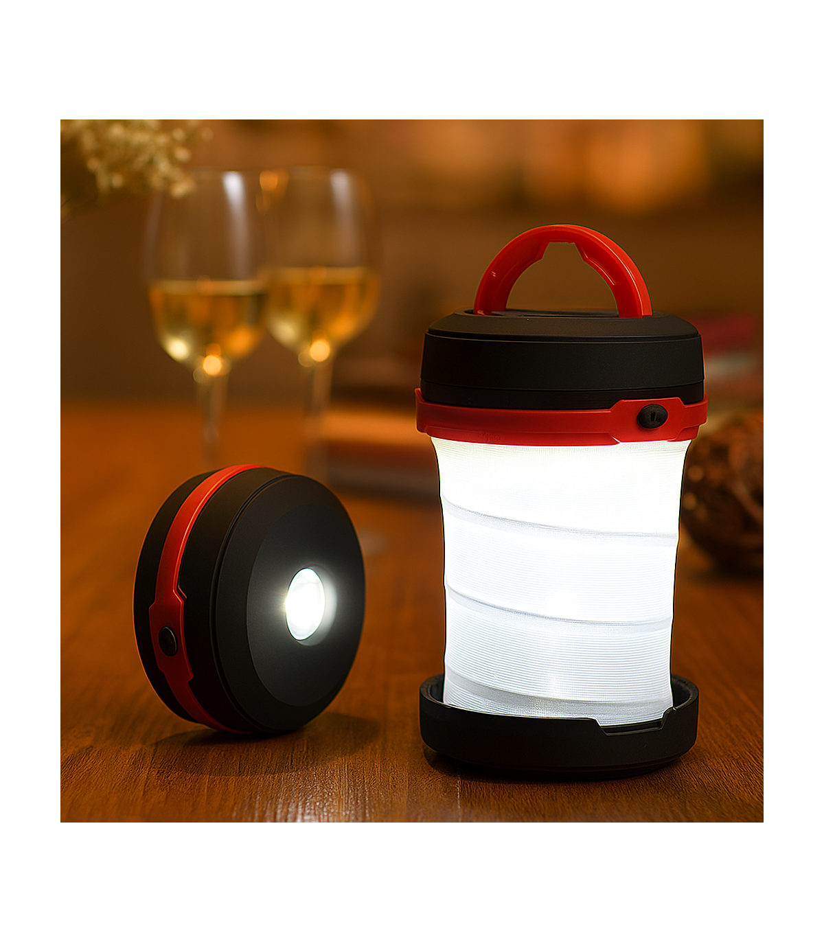 This product is perfect for any sort of camping as it has two uses a focused torch and a pop up lamp. Has three different modes normal, bright and flash, made from strong ABS and powers from 3 AA batteries (not included). Measures 13cm x 8.5cm diameter