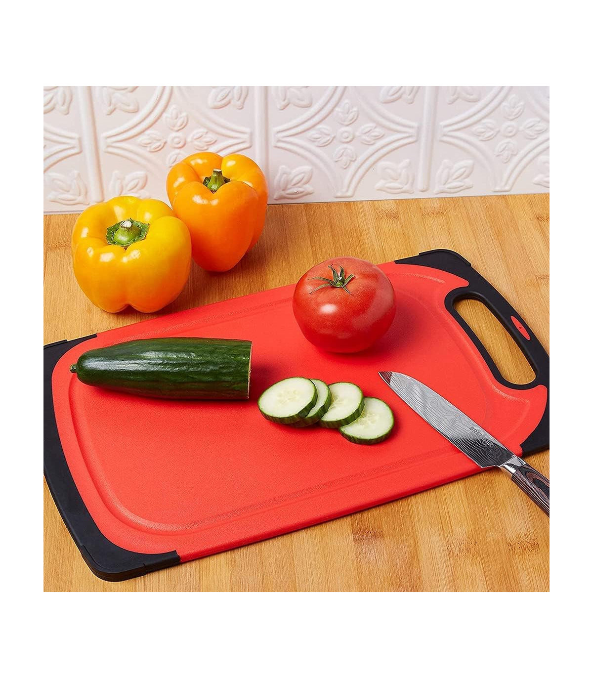 The large cutting board on the other side allows ample space for chopping, cutting and mincing. Durable resists deep cuts and scratches to keep your board looking fresh. With a handy hanging handle for convenient storage. H1cm x W24cm x D40.3cm. Hand Wash. Not recommended for us in dishwasher