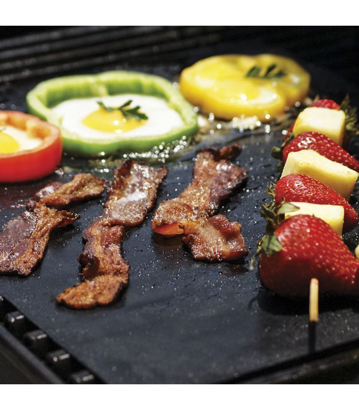 EASY TO USE: Easier to use than a grill pan or basket, and more effective than aluminum foil, which rips when you turn your food. Simply place grill mats directly on any outdoor cooking surface, whether at home, at a public barbecue, or while camping, and get ready to grill! Grill with confidence and yet look the part, everywhere and at any time. MULTIPURPOSE: Best used on any type of grill, whether charcoal or gas or as a baking sheet or pan liner for both electric and gas ovens, it makes grilling food easier and more delectable than ever. It's much convenient to carry than pots and pans for camping or picnics! Ideal for camping, patio, backyard parties, gatherings, and other indoor or outdoor activities. Cut to fit toaster ovens, pans, and cookie tins for cooking, roasting, baking, and frying. MESS FREE - These oven liners save time and energy by evenly cooking food and keeping your grill clean! Ideal for preparing chicken, ribs, eggs, bacon, and other foods. Heavy-duty oven mats for the bottom of the oven are the ideal option for keeping your oven clean and spill-free. It collects sauces, cheeses, and other baked-on debris that may drip on the oven's bottom. PREMIUM QUALITY: Our BBQ mats are crafted from 100% PFOA-Free materials that are non-toxic, durable, reusable, and FDA approved. They may endure for years if properly cared for. The unique 0.2mm thickness is ideal for preserving grill marks and flavor while providing optimum heat resistance (up to 500°F) and longevity. BBQ GRILL MAT SIZE: 40x33cm