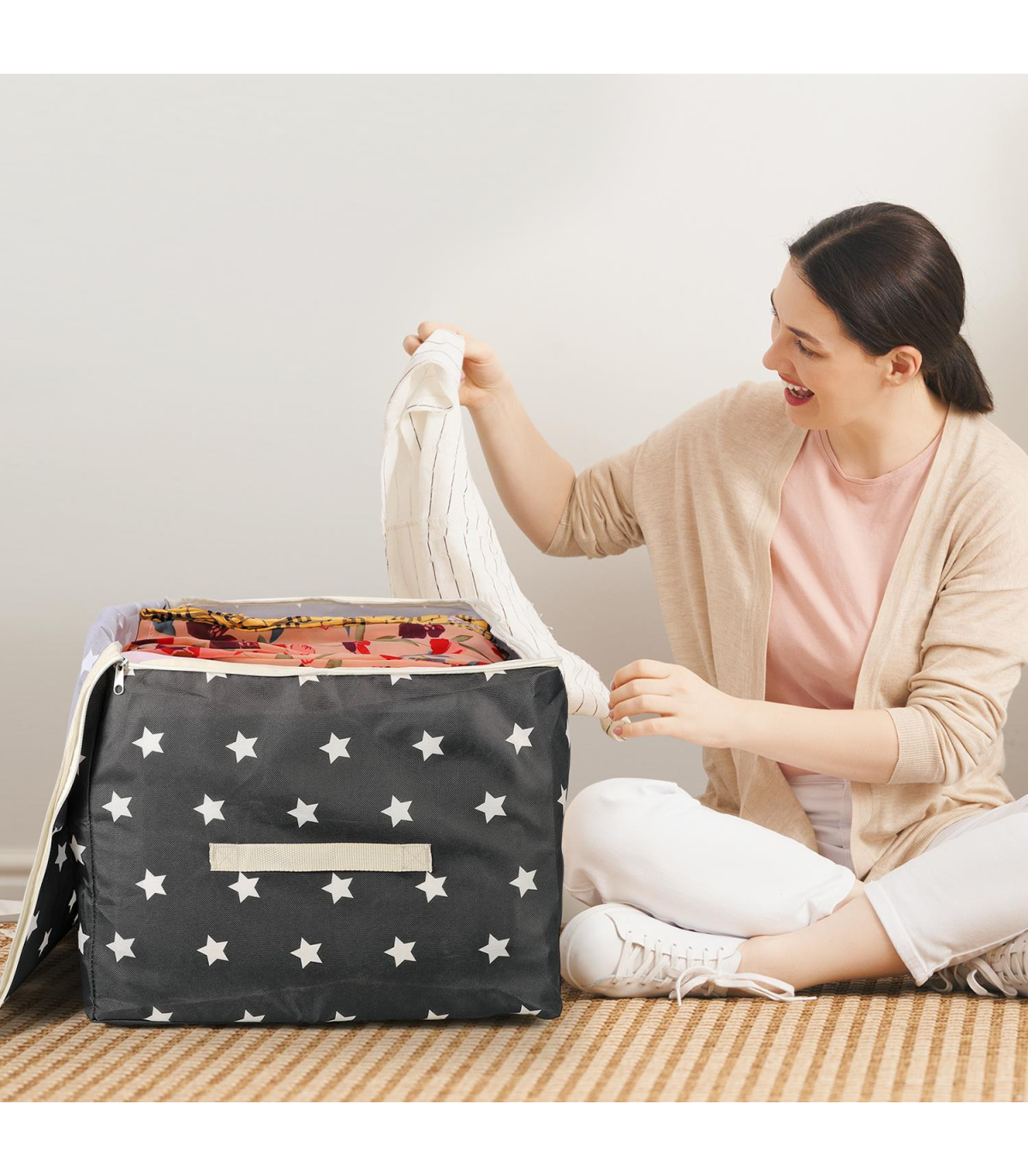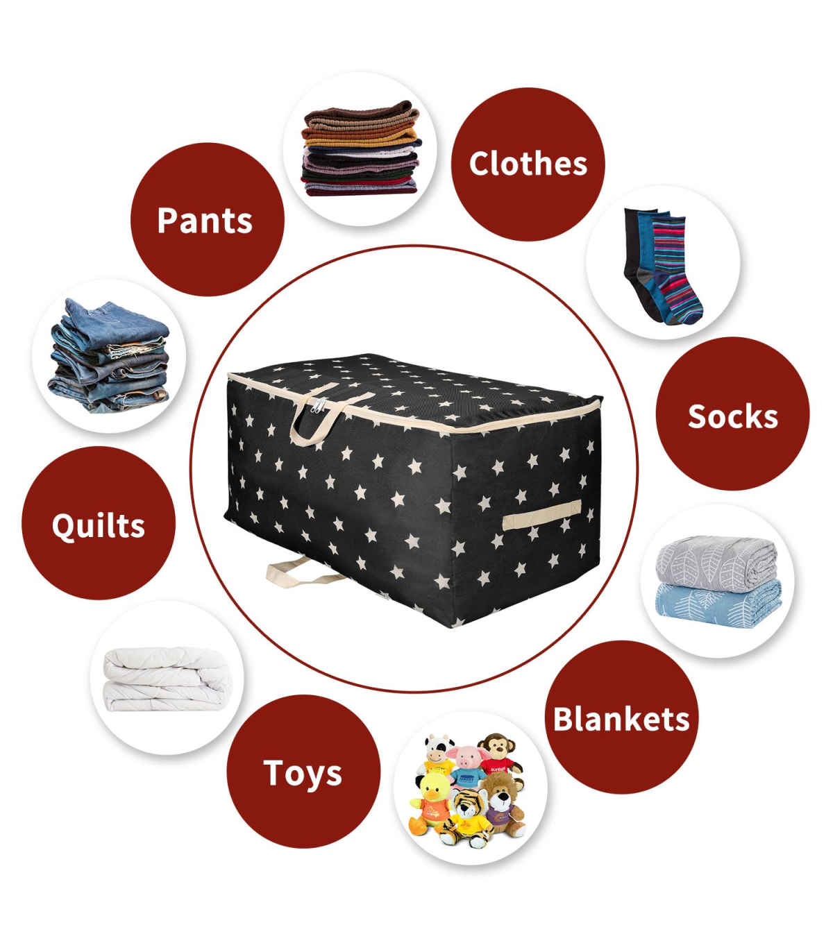 ENORMOUS CAPACITY: Comes in a set of 3 bags, each measuring 70 X 42 X 35 cm approx. Clothing, blankets, pillows, comforters, and other household goods can all be stored in this huge storage bag. These can also be used to hold shoes, toys, small electronics, stationery, towels, and groceries, among other things. These storage bag organizers will come in handy for your household. PREMIUM MATERIAL: Our organizer bag is constructed from 600D Oxford fabric that makes it waterproof, high-quality, and dust-resistant to keep your goods inside fresh and clean. STRENGTHENED DESIGN: This organizer is equipped with double-ended metal zippers which allow the bag to smoothly slide along the closure when in use, regardless of how full it is, and reinforced thick and sturdy handles are stitched for added strength to make it convenient to be carried from one place to another. MULTIFUNCTIONAL: These storage bag organizers can be used under the bed, in a closet or wardrobe, attic, university dorm, and in your car when traveling. They stack effortlessly to save space, and when not in use, they can simply be folded and stored. SIMPLE AND STYLISH DESIGNS: Chic and simple appearance provides natural and stylish aesthetics that blend seamlessly with the surrounding décor.