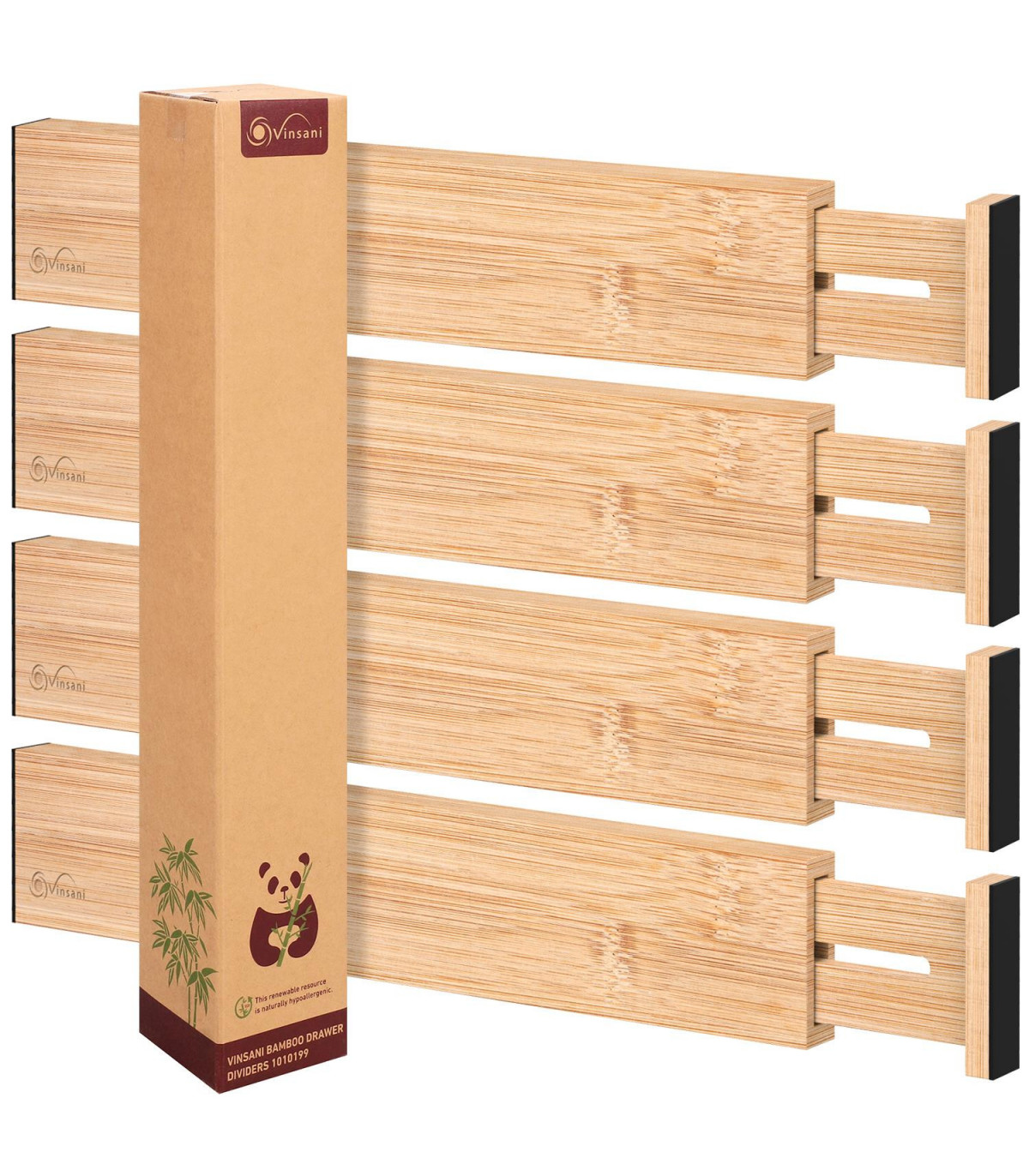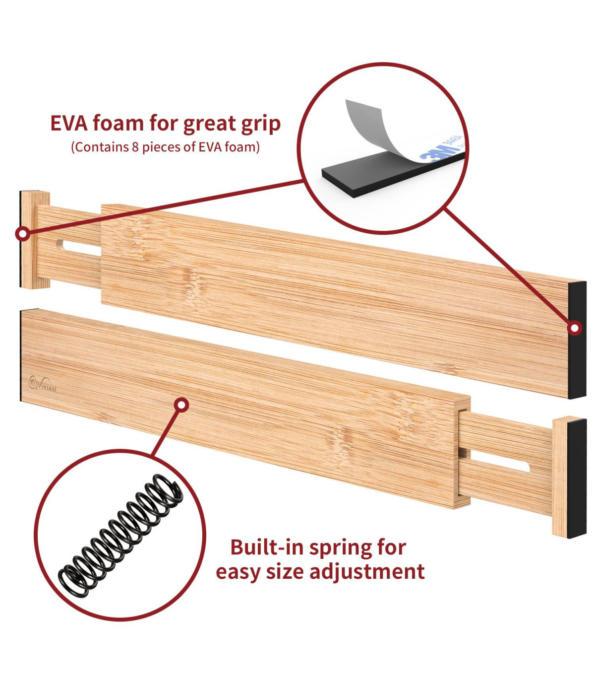 PREMIUM BAMBOO QUALITY: These well-crafted bamboo adjustable drawer dividers are made of the finest quality 100 % natural bamboo sustainable and durable, sturdy, and aesthetically pleasing providing you with a very smooth & stunning look in your drawer. It will feel as if your drawer was handcrafted.