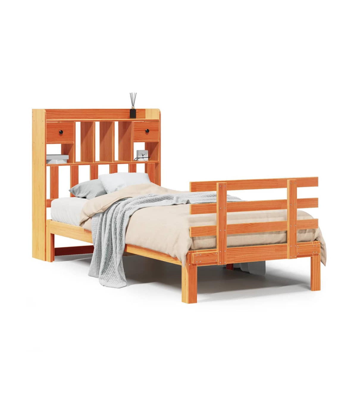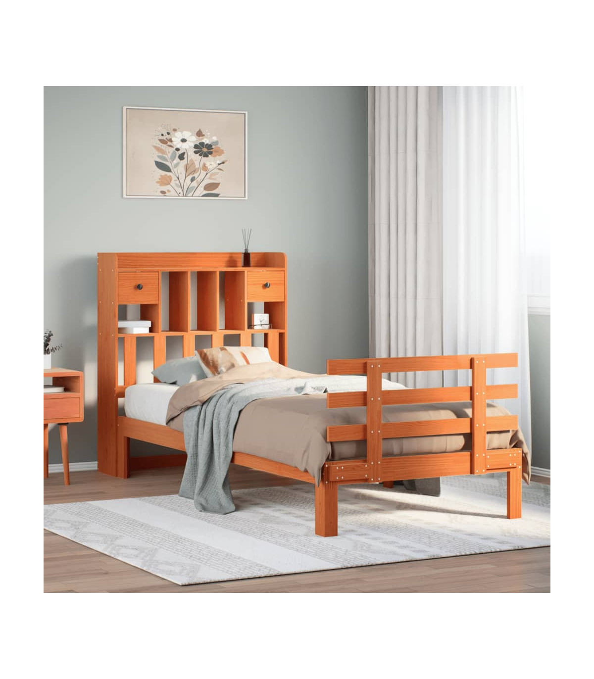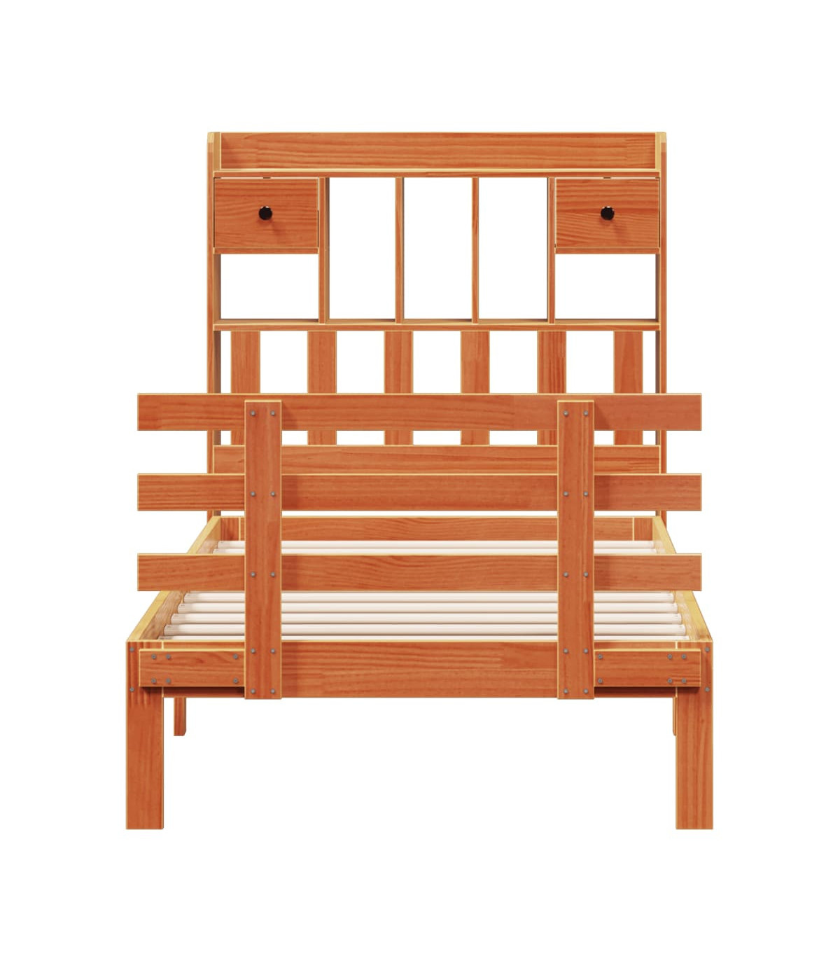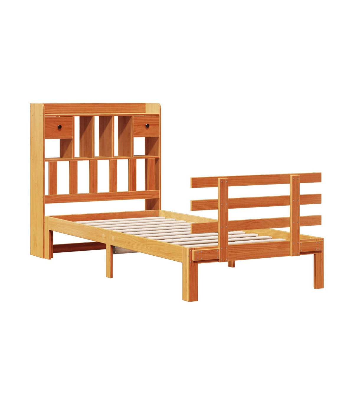 vidaXL Bookcase Bed without Mattress Wax Brown 75x190 cm Small Single Solid Wood Pine