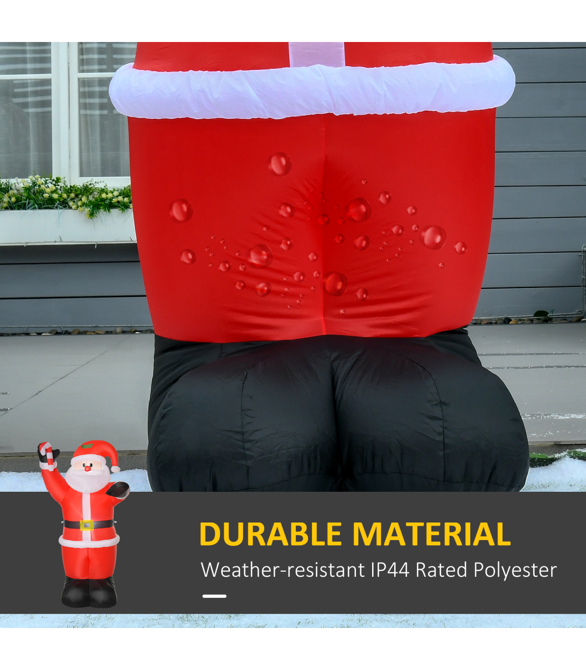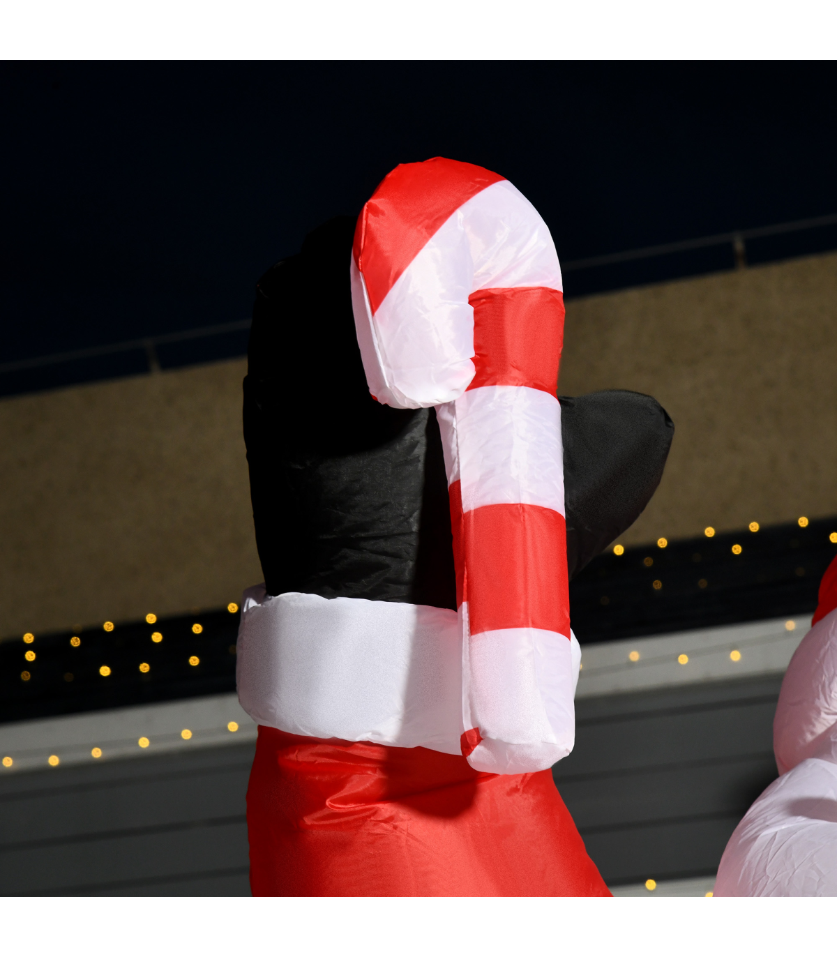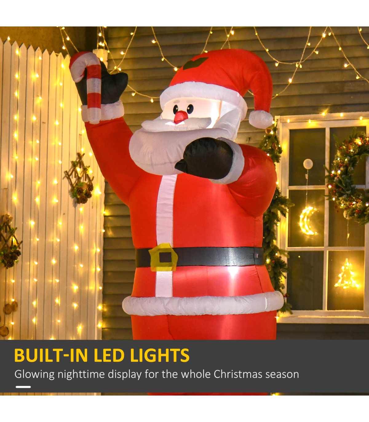 Inflatable Christmas Santa Claus Air Blown Decoration Yard" Description: - Inflatable Santa holding a candy cane - Made with durable and sturdy polyester cloth - Equipped with 2 sets of LED lights for nighttime illumination - Easy to inflate and deflate for storage and display - Water-proof material suitable for any weather conditions - Cloth has passed the EN14362-2 and fire test - Fan certified with ROHS and CE - Transformer certified to BS standards