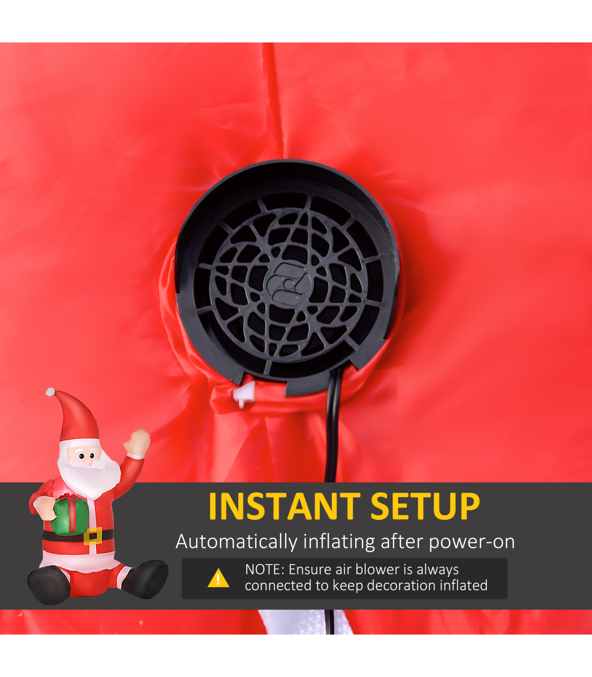 Light up your family and guest�s Christmas this year with help from this inflatable Santa Claus from HOMCOM. Standing at a compact but impressive 4FT tall, it is made from weather-resistant polyester (with EMC and RoHS certification) so it is safe to use outdoors for years to come. Cute and colourful in design, LED lights and fan are placed inside so it moves around illuminates your outdoors at night for a fun effect. Inflating in seconds to save you time, it is finished with a zip fastening so it deflates just as fast. A novelty piece that will create the perfect seasonal cheer for your home.