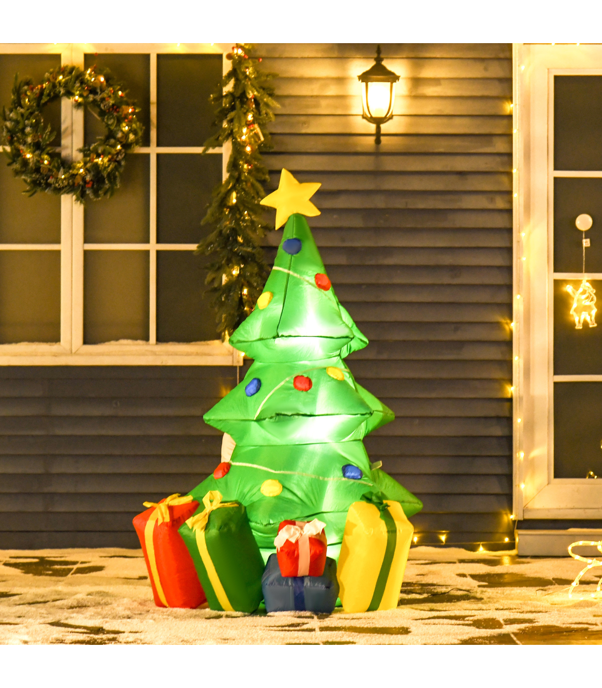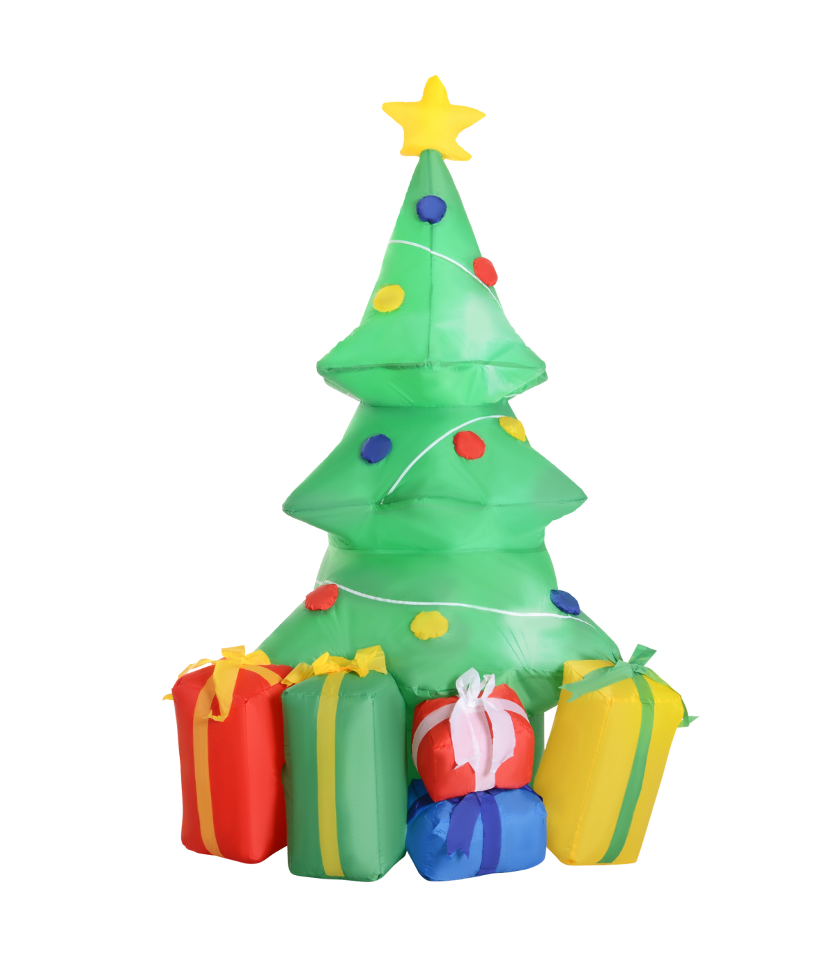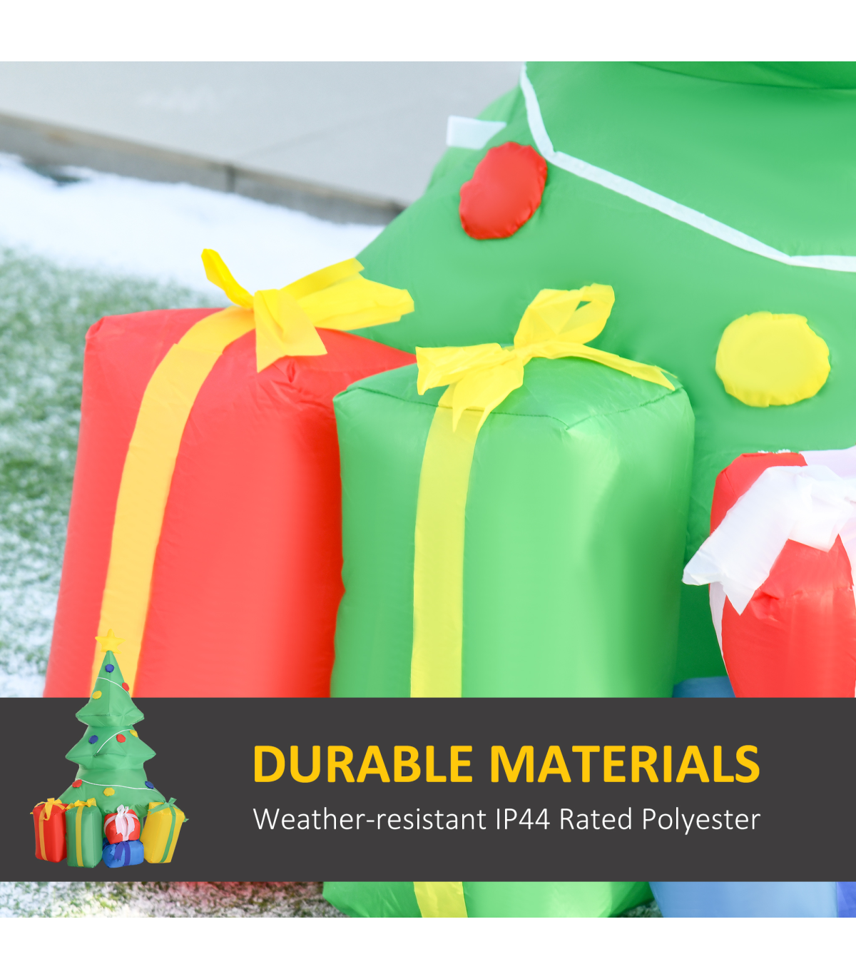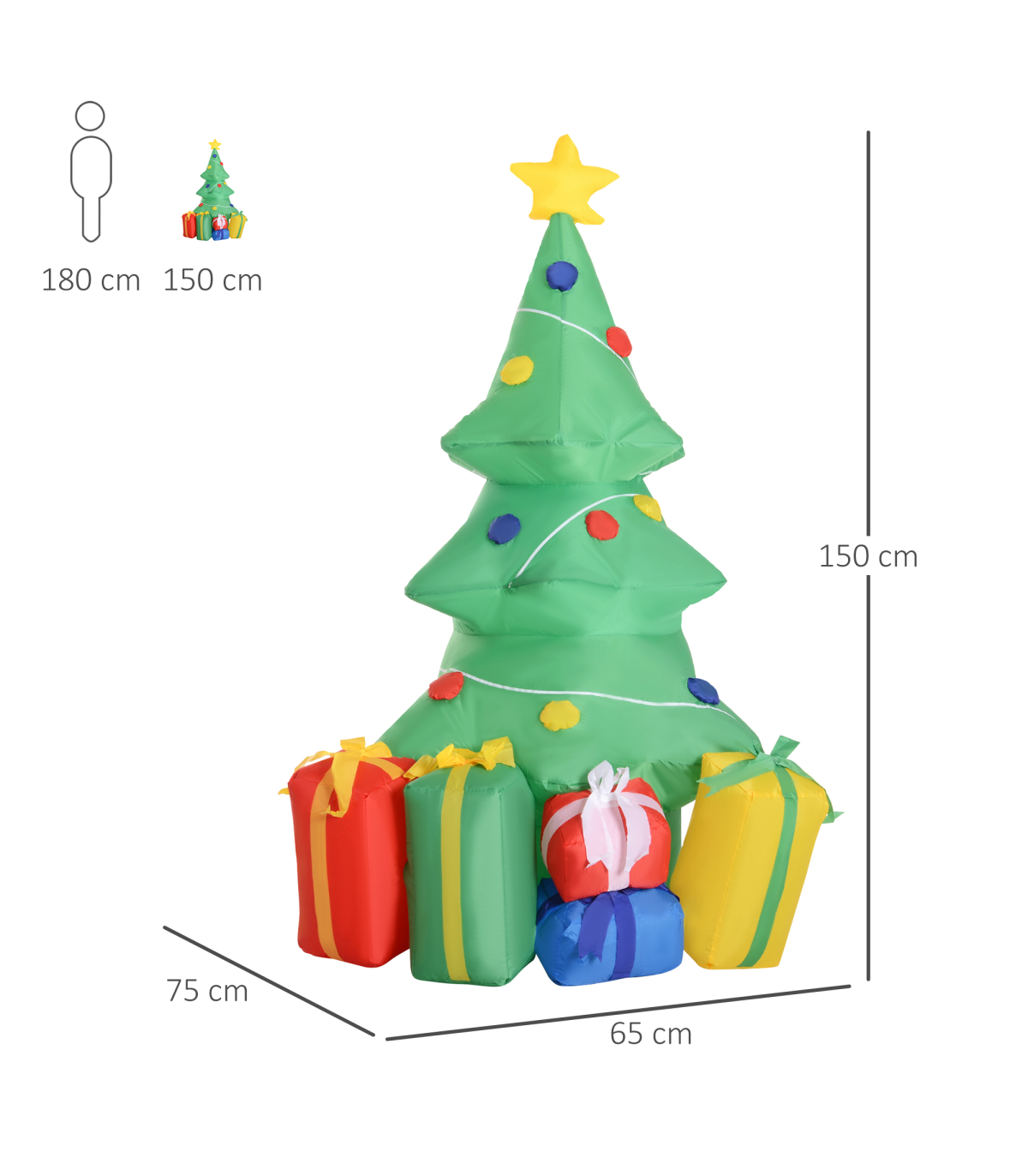Create the ultimate festive Christmas display in your yard this holiday season with our large 1.5 m tall Christmas tree with presents inflatable from HOMCOM. Designed with ultra-durable, weather-resistant, water-resistant polyester and featuring an internal white LED glow, this holiday tree will create a festive focal point in your yard, invoking the holiday spirit for years to come. Self-inflating in minutes, this display plugs into any standard outlet creating a super simple set-up process that anyone can do. Build the perfect holiday yard display this year to outdo the neighbors and bring holiday cheer in classic Christmas fashion.
