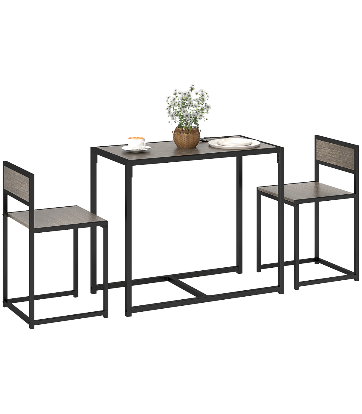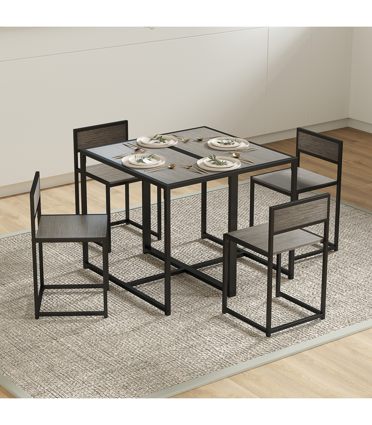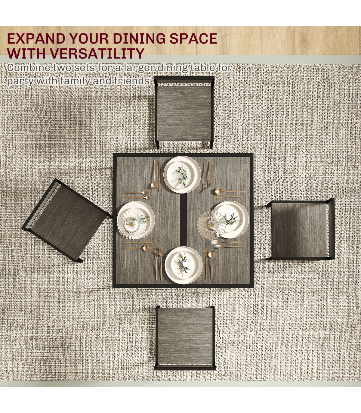 ● Compact design, with the chairs tucking neatly under the table, helps save space