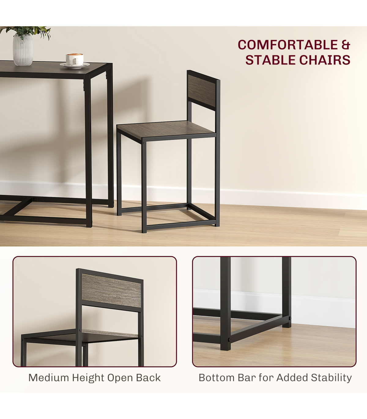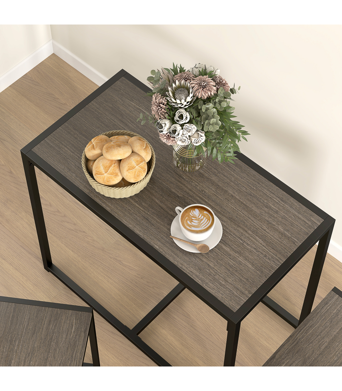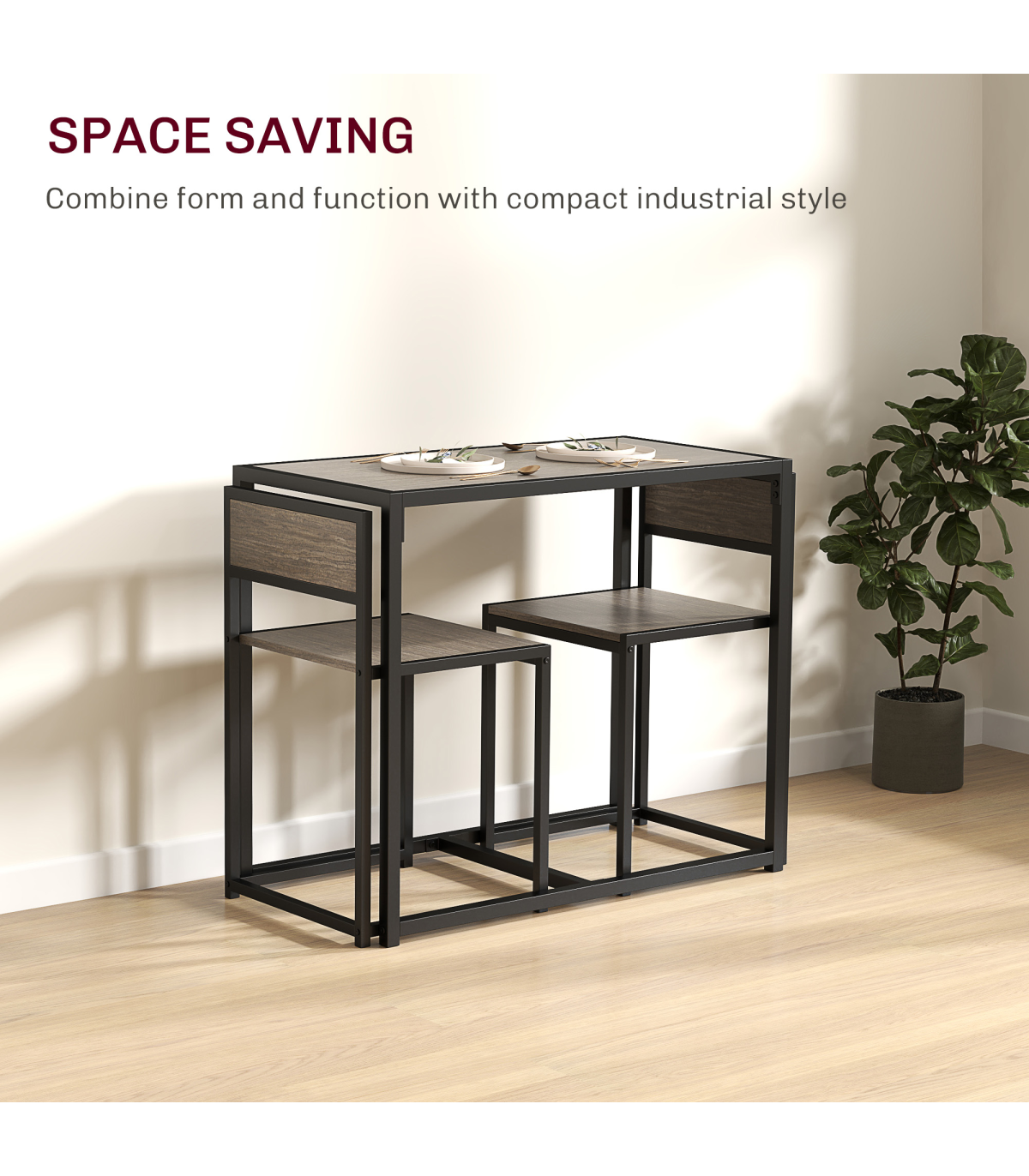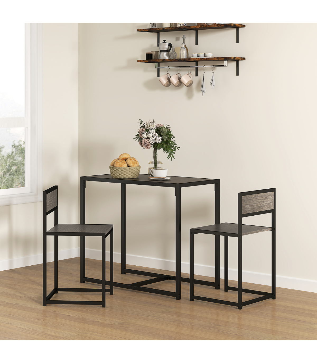 ● Compact design, with the chairs tucking neatly under the table, helps save space
