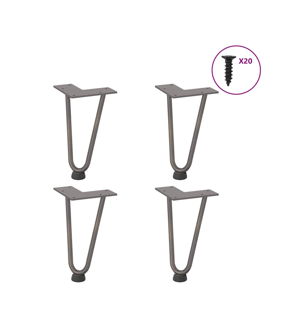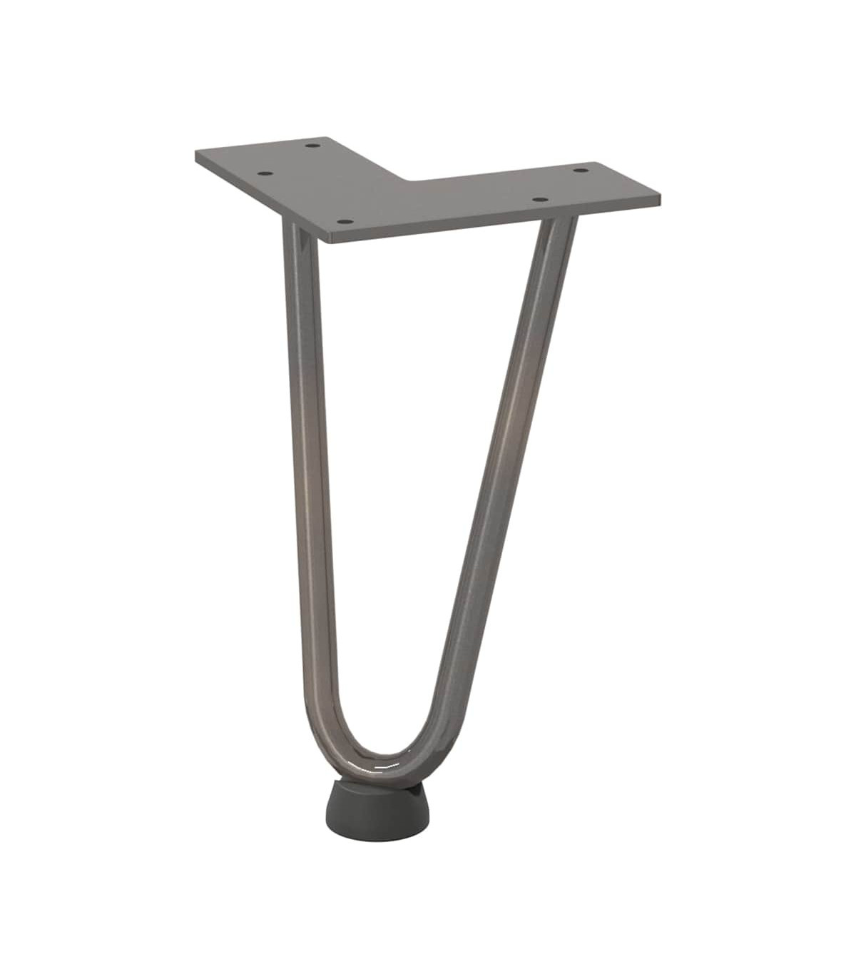 These hairpin table legs combine form and function. It's an ideal choice for customising your coffee table. Durable material: This hairpin table leg is made of solid powder-coated steel, making it sturdy and long-lasting enough to support a heavy tabletop.Practical design: This hairpin table leg includes adjustable foot levellers, ensuring stability even on uneven floors and minimising floor scratches. Furthermore, the bracket incorporates pre-drilled holes and delivery-included screws for attaching the leg to the tabletop (not included), simplifying the assembly process.Modern aesthetics: The hairpin table leg offers a sleek and contemporary look. Its clean lines and geometric design enhance the overall appearance of the furniture. Good to know:The delivery only contains table legs, the tabletop is not included.