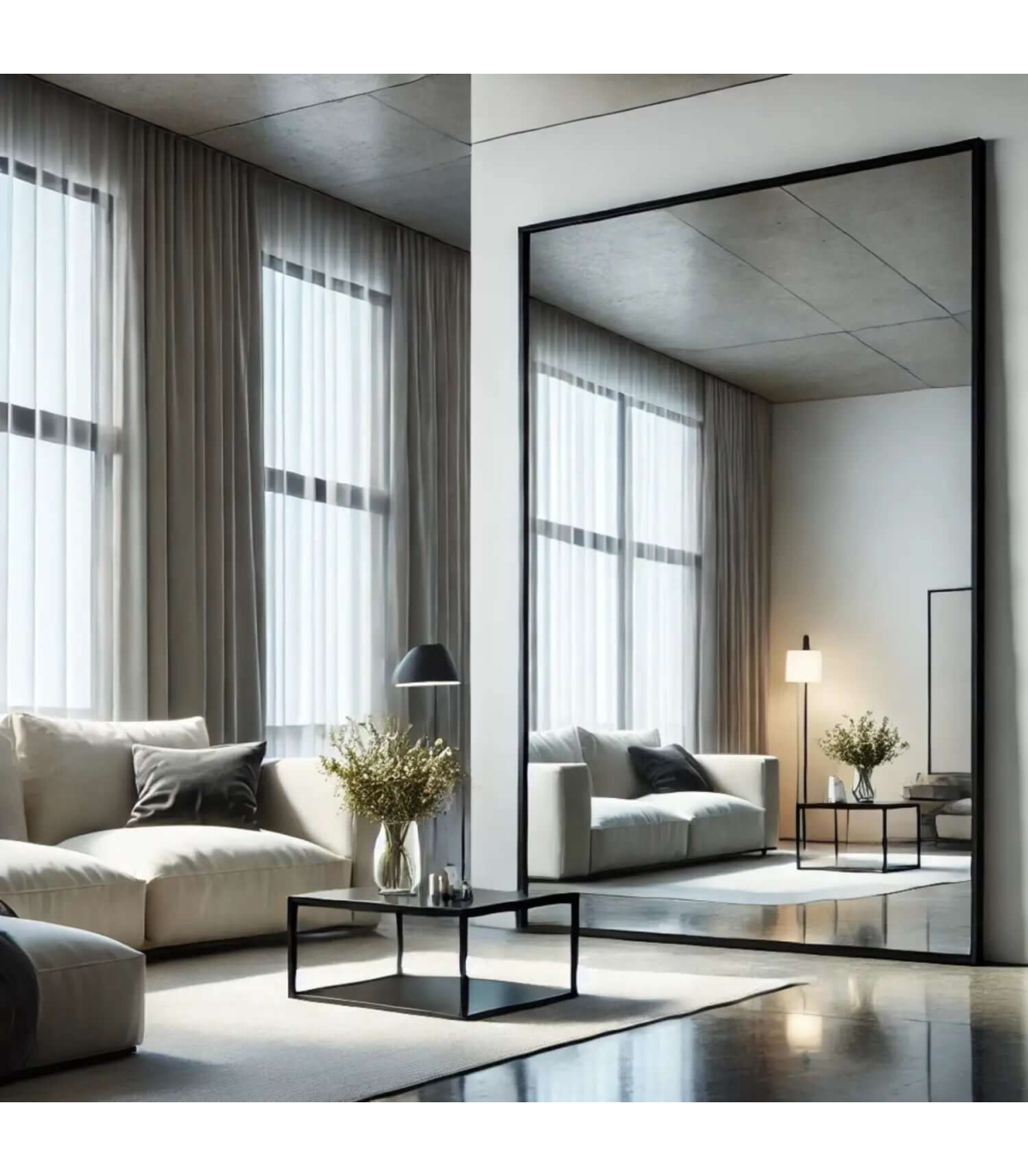 This impressive statement piece adds both light and depth to any room. Our expert welding techniques provide a virtually seamless finish, while the high-quality materials guarantee durability and safety. The 4mm HD glass paired with explosion-proof backing results in a long-lasting mirror ideal for both residential and commercial use, echoing the style of a length leaner for a sophisticated urban aesthetic.