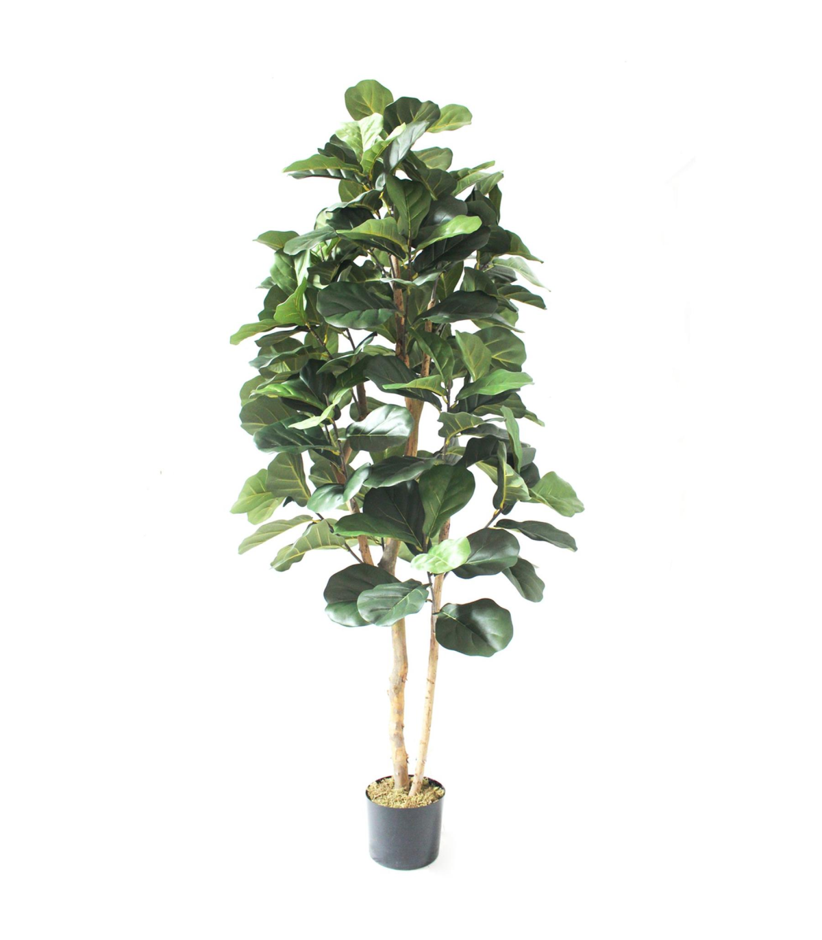 Enhance your interior with the timeless elegance of this 180cm Artificial Fiddle Fig Tree. Designed to replicate the lush foliage and natural appearance of a real fig, this realistic artificial tree brings a vibrant, fresh look to any room. It comes potted in a black plastic pot for immediate display and can easily be placed inside your favourite decorative planter to suit your style (decorative planter not included). The tree features wired stems, allowing you to adjust and shape the branches for a full, natural look. Perfect for home, office, or commercial environments, this lifelike fig tree requires no watering or maintenance, offering year-round greenery with minimal effort.