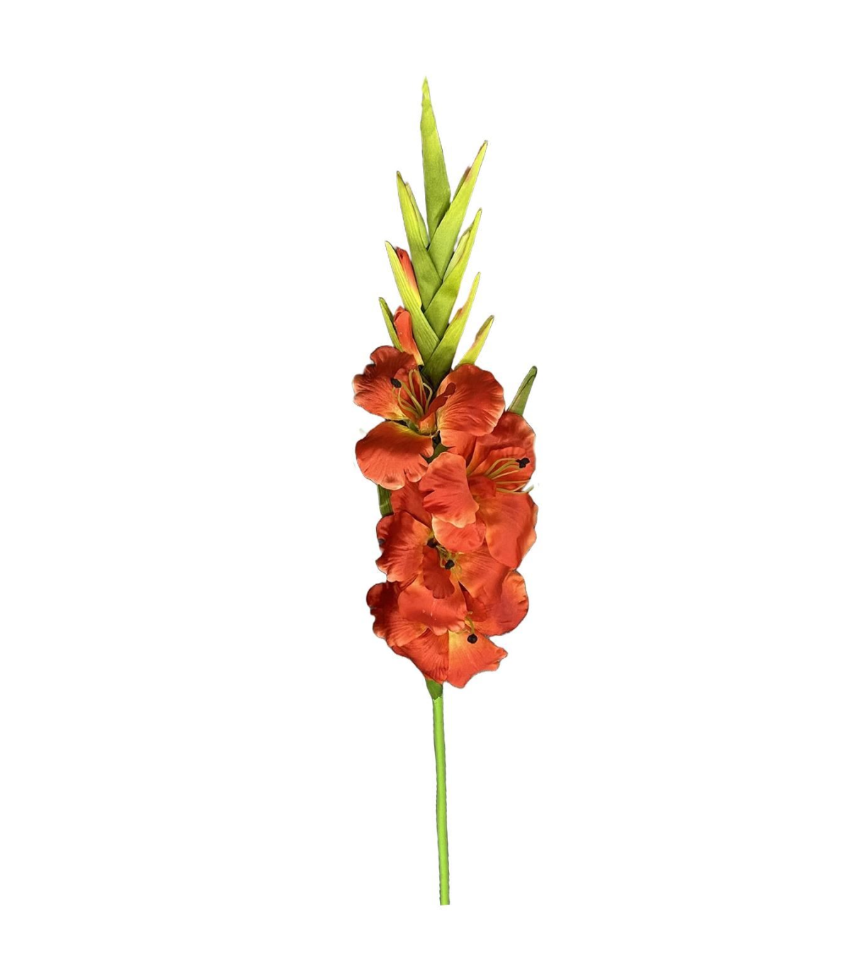 Pack of 6 x 115cm artificial orange gladioli stems. These 115cm tall artificial orange gladioli stem is perfect for adding a pop of colour and sophistication, featuring orange blooms with intricately detailed petals, making it a standout addition to any floral arrangement. Crafted from premium, durable materials, these faux orange gladiolus stem offers a natural look without the maintenance. The long, flexible stem is wired and allows for easy customisation in tall vases, centerpieces, or mixed bouquets. Ideal for home décor, weddings, events, or commercial spaces, it provides lasting beauty without the need for water or care.