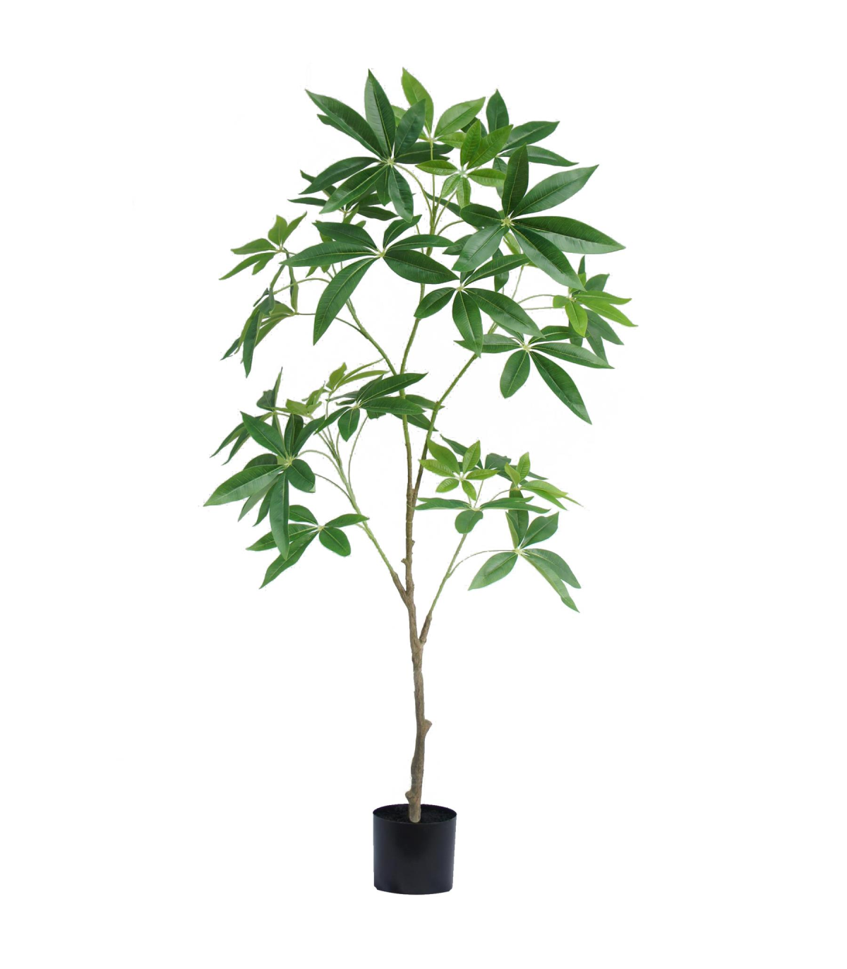 Add a bold touch of greenery to your space with this 120cm Artificial Money Tree Pachira, crafted to deliver the realistic look of a tropical plant. With carefully detailed foliage and a lifelike trunk, this faux tree captures the essence of a real Pachira without the upkeep. It comes set in a simple black plastic pot, ready to be displayed as is or placed inside a decorative planter of your choice to match your interior décor (decorative planter not included). The wired stems offer flexibility to shape the branches for a natural, full-bodied appearance. Ideal for both home and office settings, this maintenance-free artificial tree brings long-lasting freshness and vibrant charm to any room. We have these particular trees available in a range of sizes.