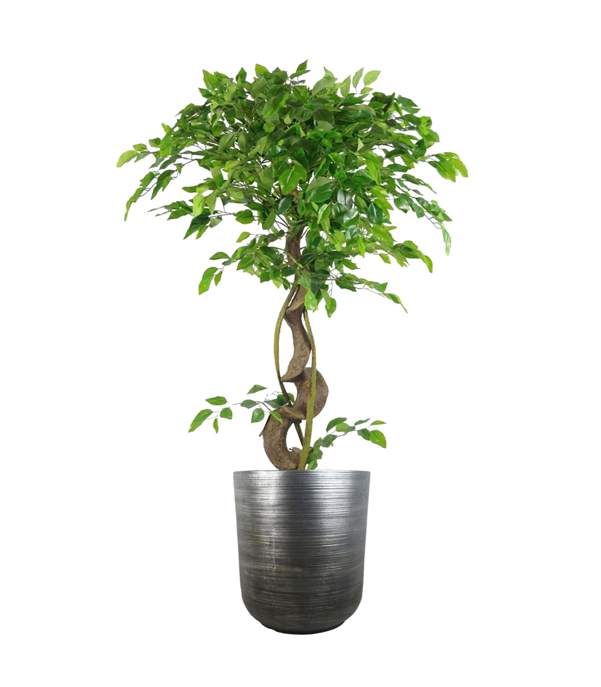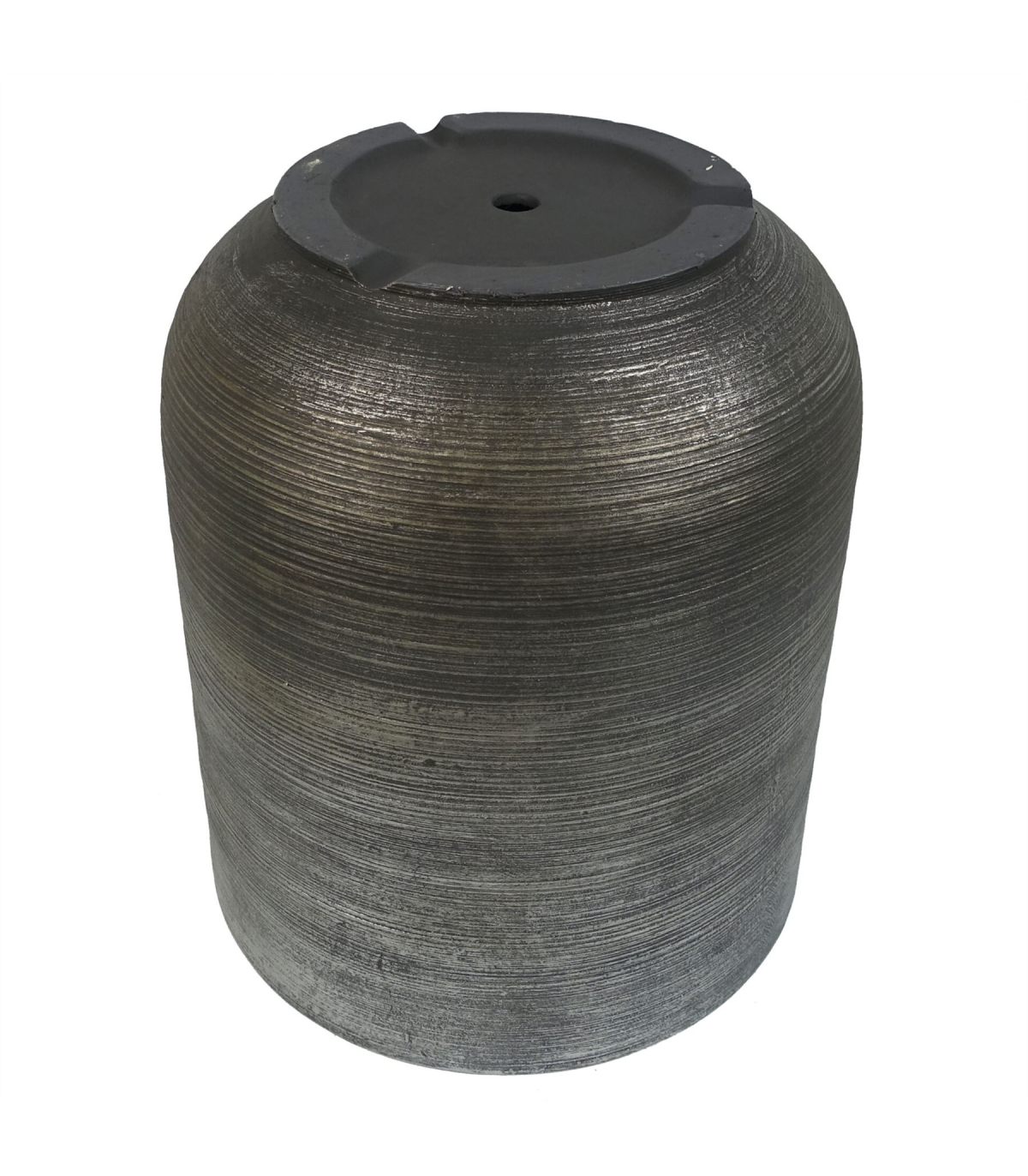 Ridged silver finish effect. Large fibreglass cement composite planters, hand finished in a rustic style. Available in a range of designs and sizes. Large planter ideal for either artificial plants or real ones. Designed for indoor use but can be used outdoors in a sheltered position, we recommend protecting from extremes of weather. Overall size: 39 x 33 x 33cm. The inner hole diameter is 30cm, any of our plants with starter pots smaller than this and all our bare stem plants will fit perfectly inside this planter. Has a drainage hole. Intentional Rustic finish. Material: fibreglass cement composite.