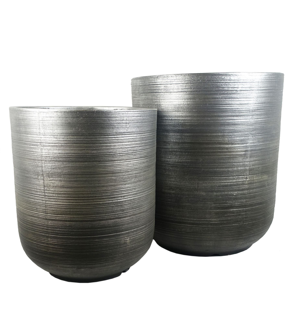 39cm x 33cm Coya Silver Ridged Planter Large Composite Plant Pot