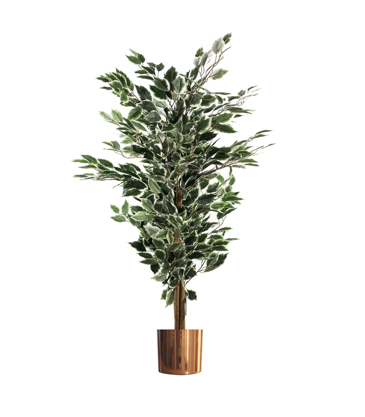 130cm Variegated White/Green Bushy Ficus Tree Copper Metal Planter