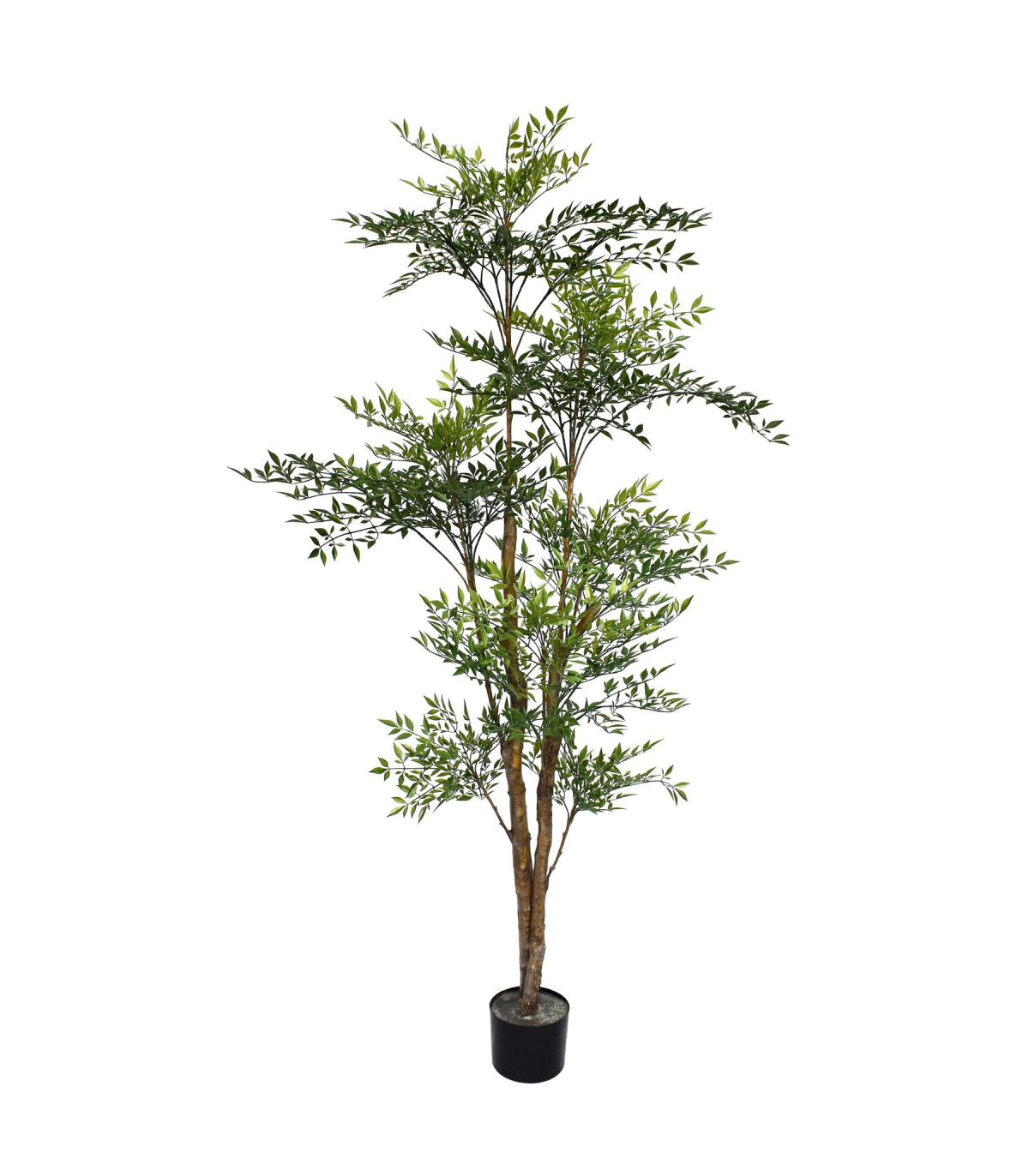 165cm Fire Retardant Plastic Film Nandina Tree with 4857 Leaves and a plastic trunk. This plant is made from fire-resistant materials which makes it perfect for both residential and commercial use. Enjoy vibrant greenery without the need for watering, sunlight, or trimming.