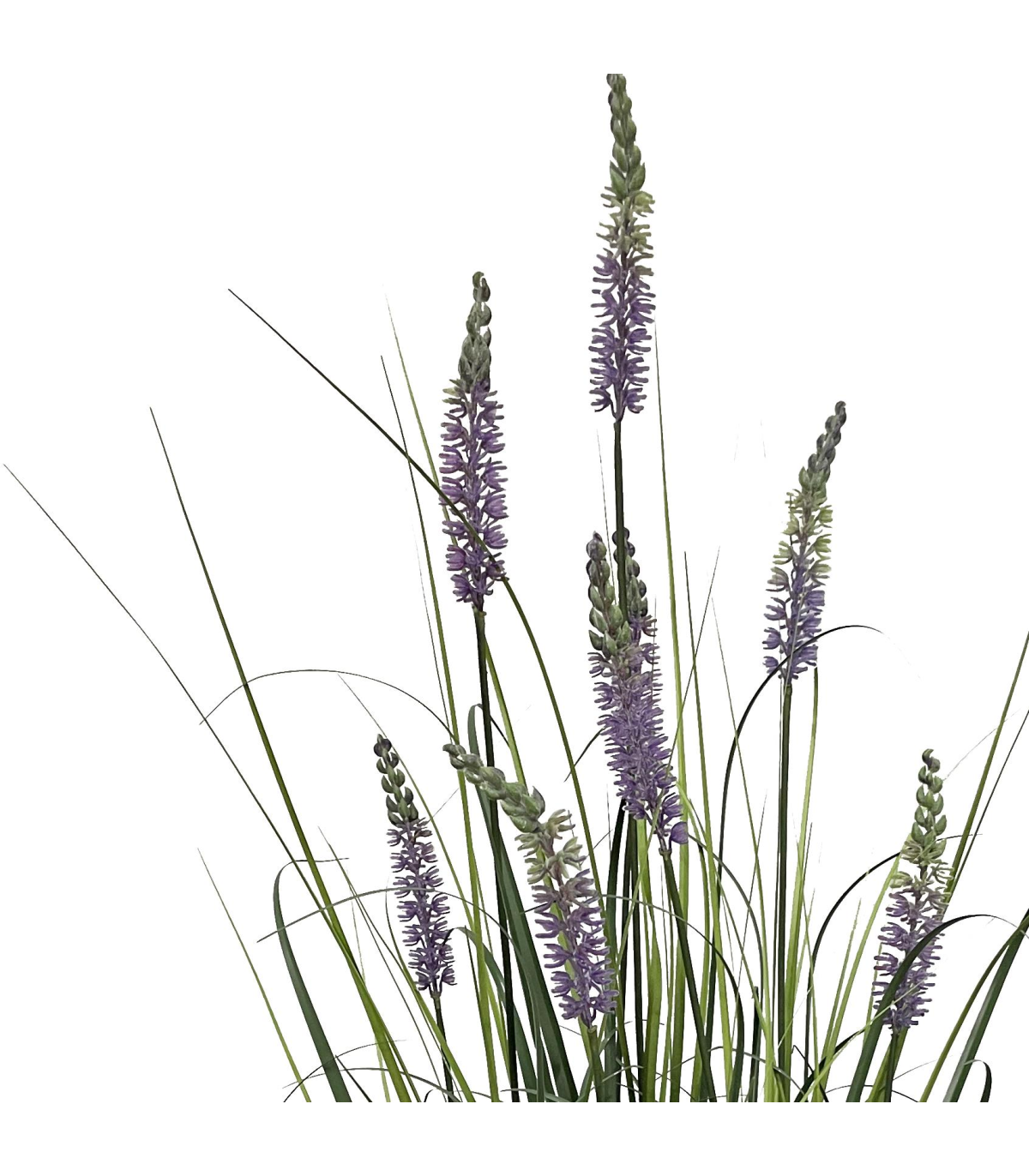 125cm Lavender Grass plant. A realistic plant, measuring 125cm tall x 50cm wide when arranged as shown in our photos. It comes fully potted in a plastic weighted pot. Requires no maintenance or watering and is ready to display straight out of the box. Entirely artificial components. These plants are designed to be put inside a larger planter to display and you can add soil - gravel or bark around them to make them look even more realistic. Leaf Design UK product.