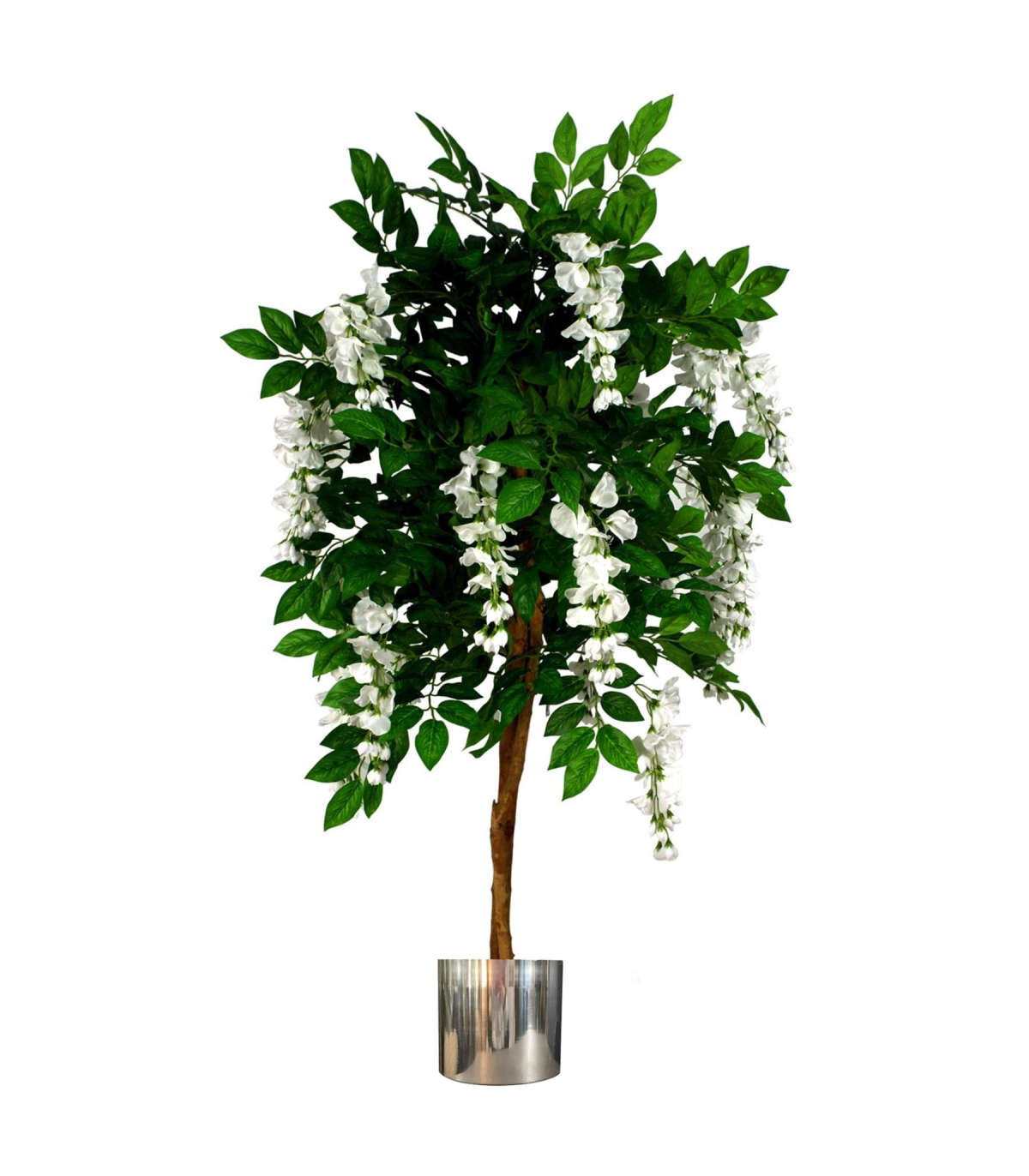 130cm Luxury Artificial Wisteria Tree White Flowers - Premium Range Silver Metal Planter