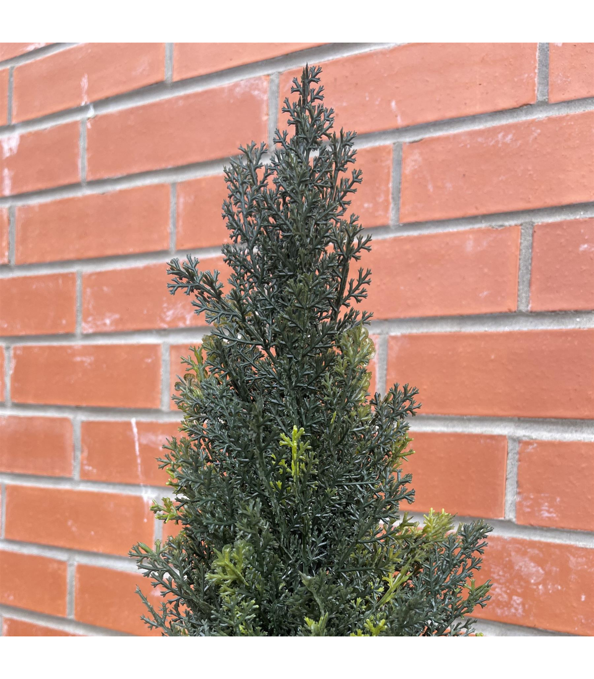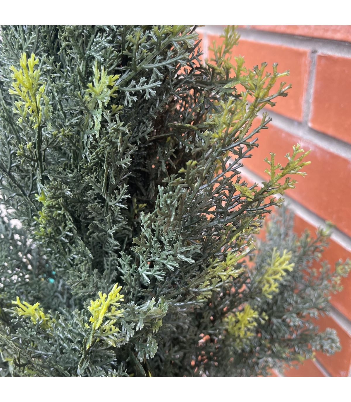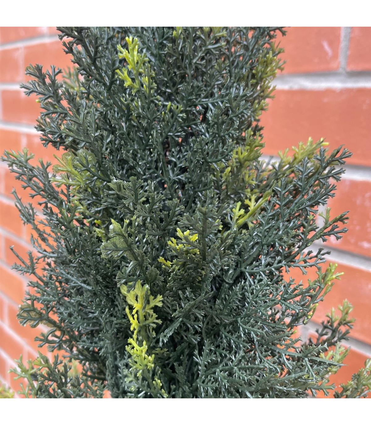 120cm Cypress topiary tree. Crafted to mimic the natural elegance of a real tree, this tall topiary has a full and lifelike appearance. With no need for watering or sunlight, this maintenance-free topiary tree delivers year-round greenery and effortless style. Stems are wired to shape to your requirements. This tree comes in two parts - a top leaf section and a base. The top easily slots into the base to create a sturdy artificial tree.