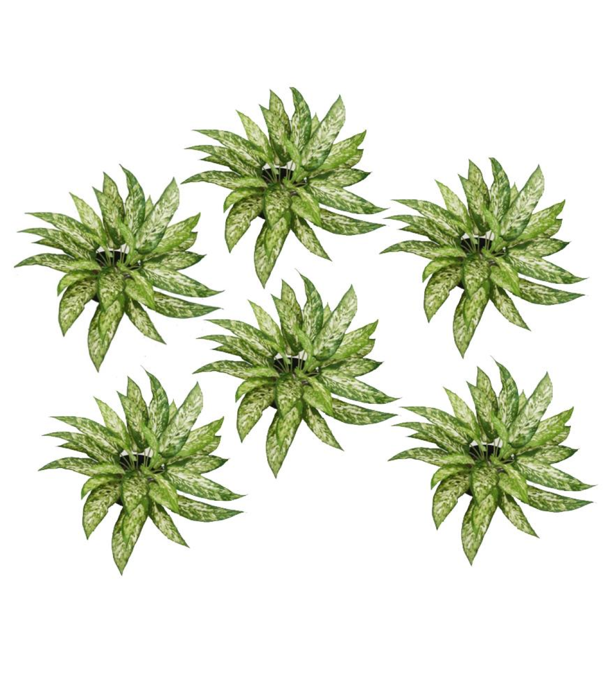 Pack of 6 x 45cm fire retardant artificial aglaonema bush plant. This plant is made from fire-resistant materials which makes it perfect for both residential and commercial use. Enjoy vibrant greenery without the need for watering, sunlight, or trimming. This plant is bare stem and has no pot.