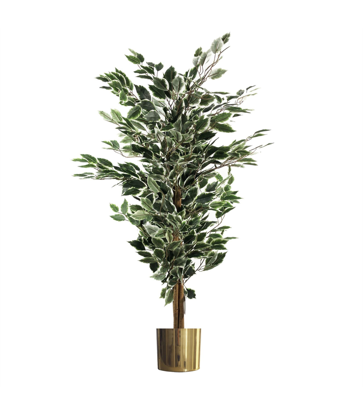 130cm Variegated White/Green Bushy Ficus Tree Gold Metal Planter