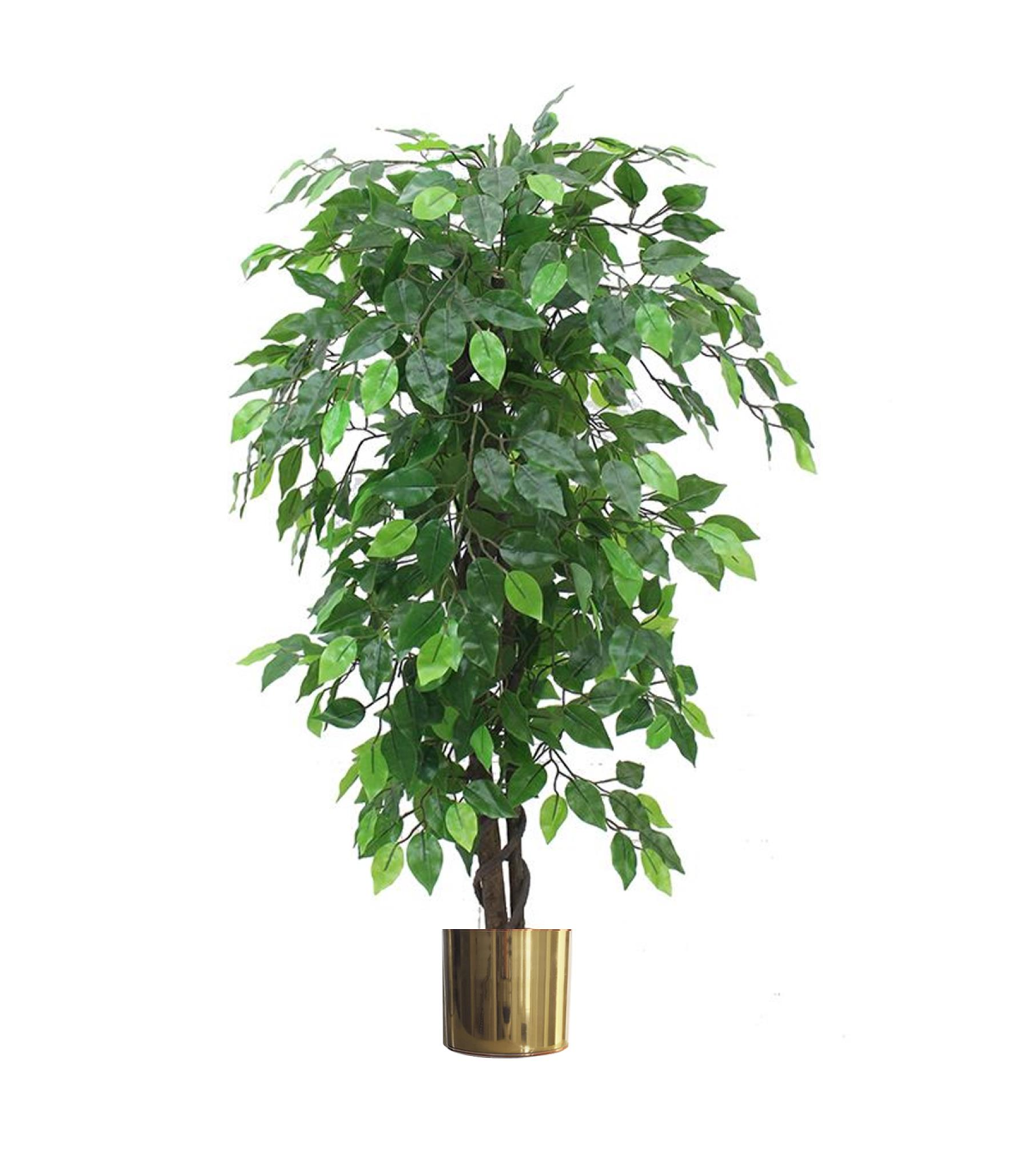 120cm Artificial Ficus Tree / Plant - Large Bushy Shape Gold Metal Planter