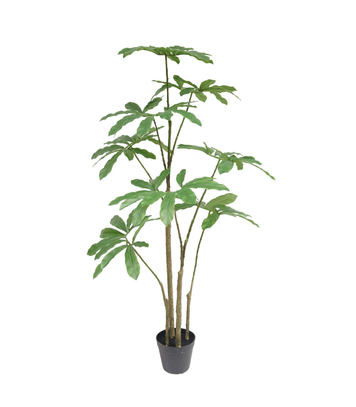 Bring the charm of nature into your space with this 120cm Dwarf Umbrella Realistic Artificial Tree. Expertly crafted to mimic the natural shape and foliage of the Schefflera arboricola, this artificial tree features lifelike leaves and a lush canopy that adds a refreshing touch to any interior. It comes securely potted in a simple black plastic pot for easy placement and is designed with wired stems, allowing you to shape the branches to achieve the perfect look. Ideal for homes, offices, or commercial spaces, this maintenance-free tree offers a lasting botanical aesthetic without the need for watering or sunlight.
