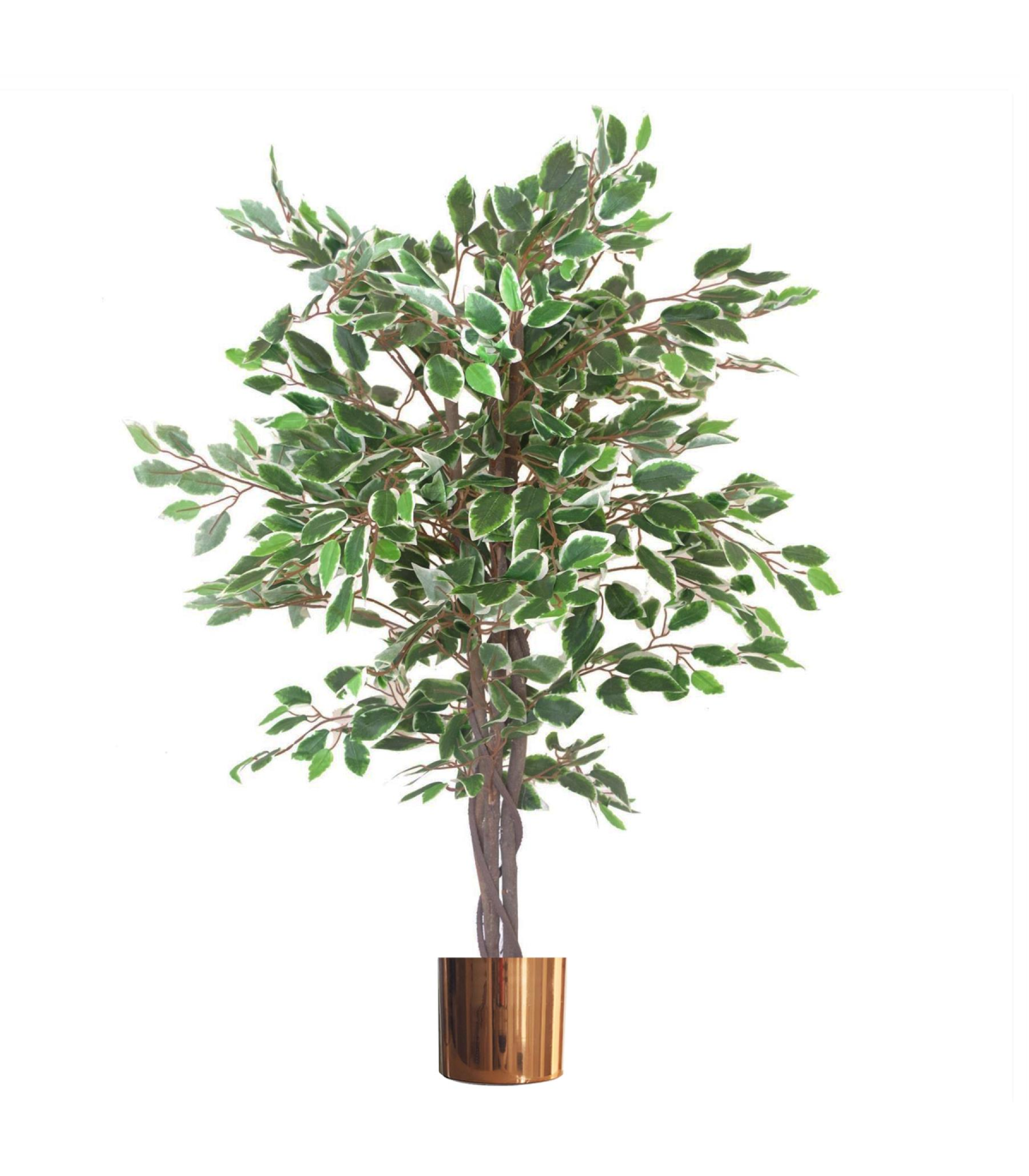 130cm LARGE Realistic White Edge Ficus Artificial Plant Tree Copper Metal Planter