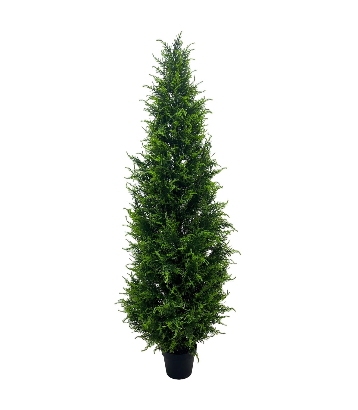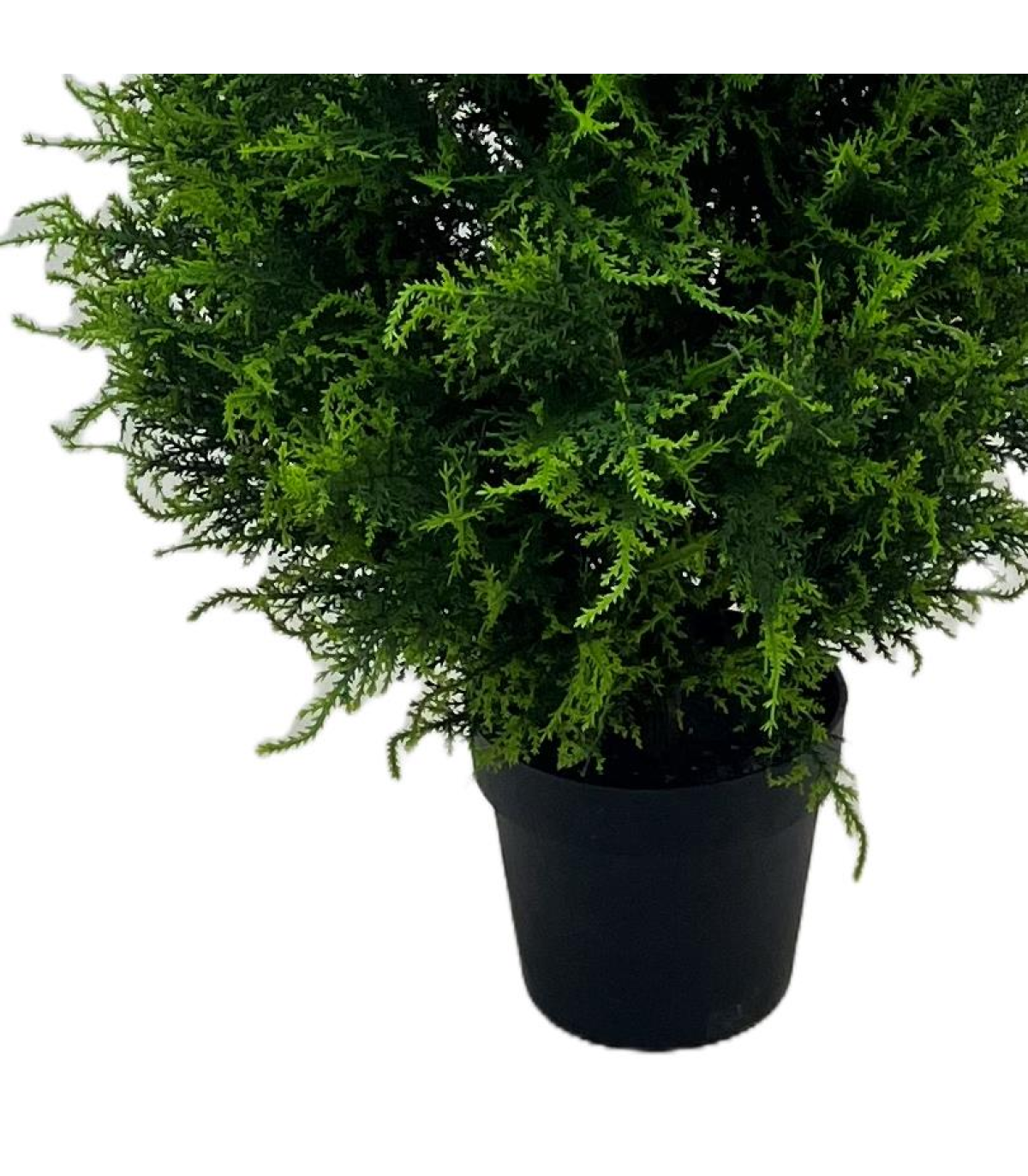 150cm UV resistant Cypress topiary tree. Crafted to mimic the natural elegance of a real tree, this tall topiary has a full and lifelike appearance. With no need for watering or sunlight, this maintenance-free topiary tree delivers year-round greenery and effortless style. Stems are wired to shape to your requirements. As a UV stable plant this is suitable for use outdoors.