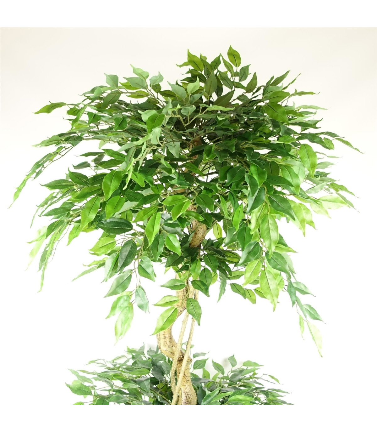 180cm Artificial Twisted Trunk Fruticosa Ficus Tree Triple Ball Topiary 1984 Leaves Gold Metal Planter