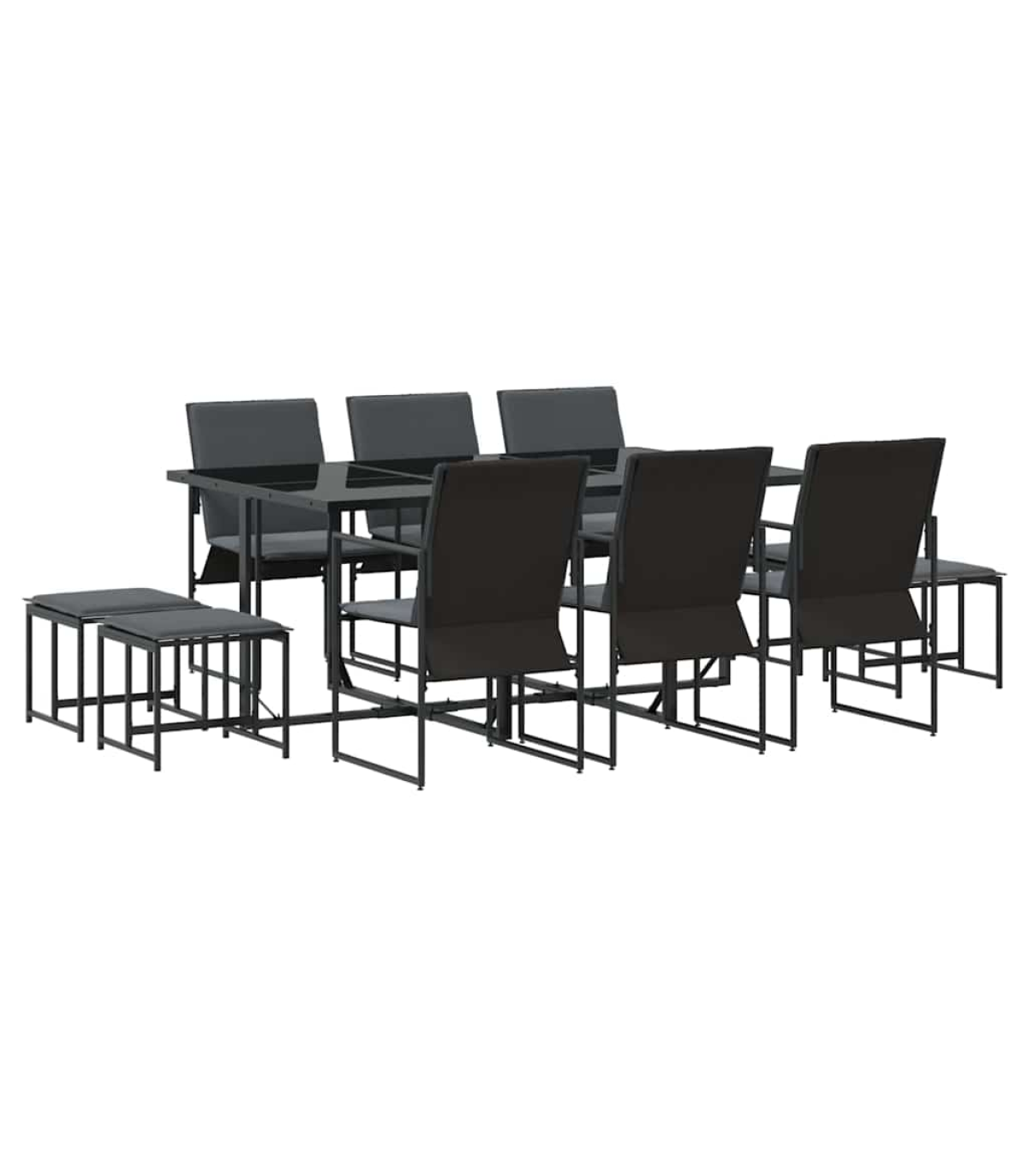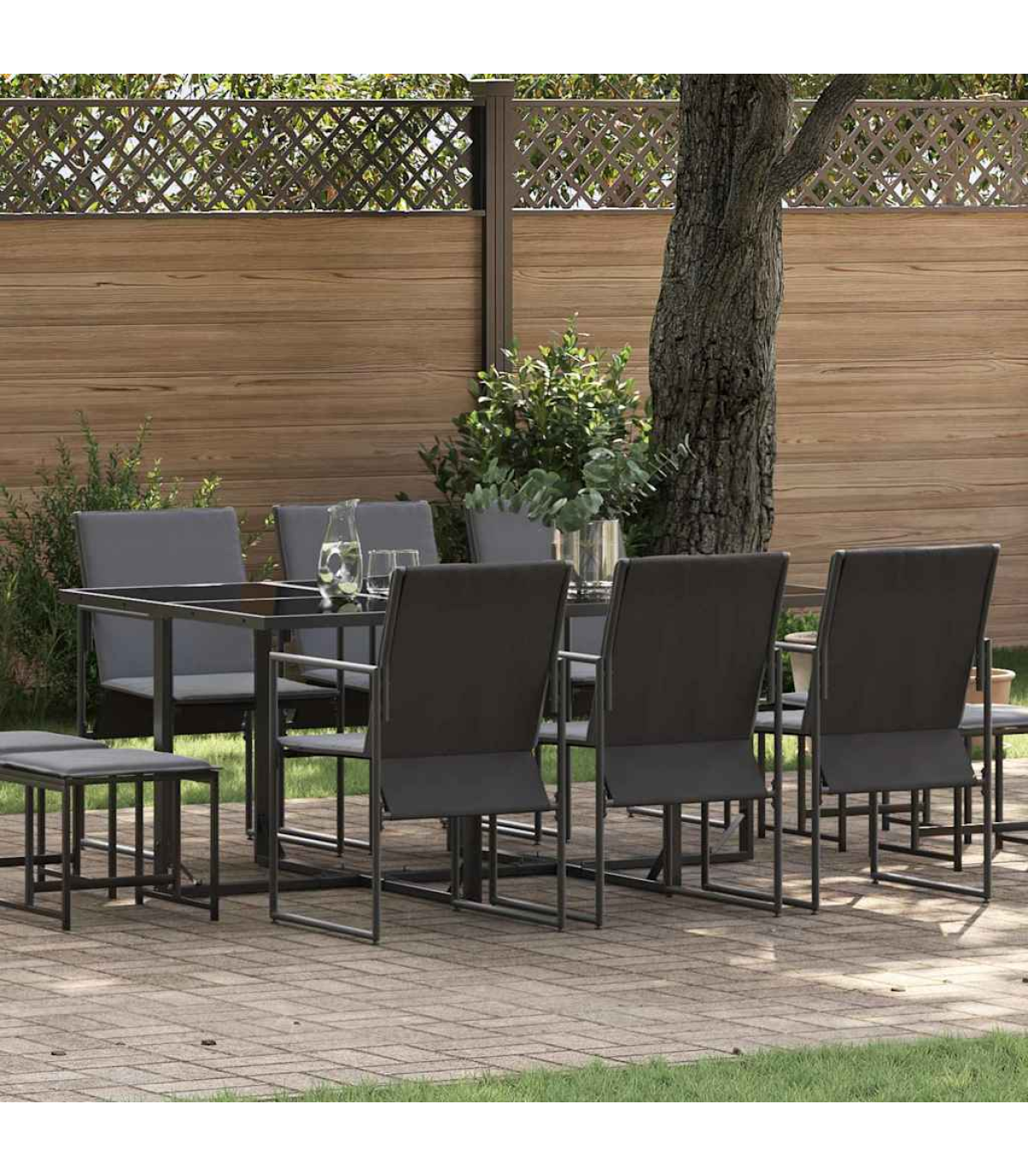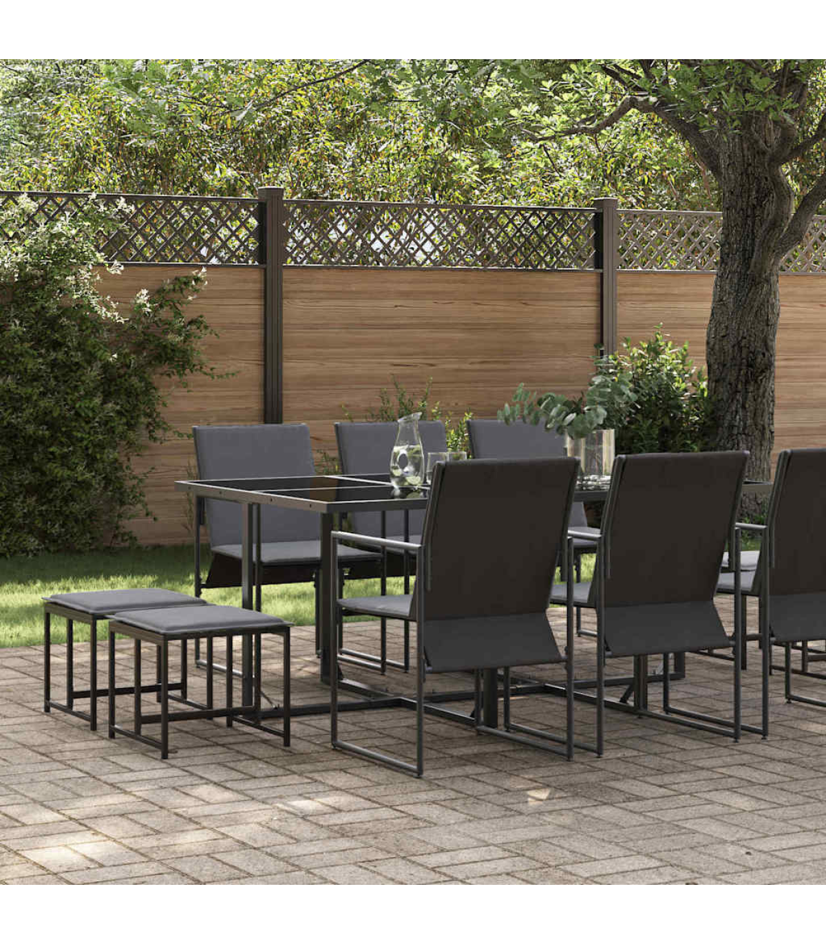 - 1 x Garden table, 6 x Garden chairs, 4 x Garden stools