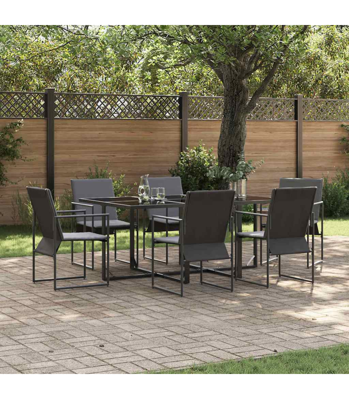 This Garden Dining Set is all about style and function, making it a brilliant addition to your outdoor area. With its classy design, it really lifts the whole vibe of your garden while giving you a comfy spot to dine or unwind. u003culu003eu003cliu003eu003cbu003eSteel Structure:u003c/bu003e The main material is steel, which is super strong and built to last. It stays sturdy through all seasons. The modern steel look adds a touch of sophistication, fitting in perfectly with nature while promising durability.u003c/liu003eu003cliu003eu003cbu003eTextilene Comfort:u003c/bu003e With Textilene in the mix, the seats are comfy without losing durability. This clever fabric won’t fade in the sun, giving you a supportive seat that matches the strength of the steel frame. It’s also breathable, making it comfy, especially when the weather’s warm.u003c/liu003eu003cliu003eu003cbu003eWeather-Resistant Feature:u003c/bu003e This set is just right for outdoors, with weather-resistant qualities that protect against the rain, UV rays, and more. That means it can stick around in your outdoor setup without you worrying about wear and tear from the elements. The materials are well-bonded for all-weather settings.u003c/liu003eu003cliu003eu003cbu003eAssembly Required:u003c/bu003e You’ll need to put it together yourself, but don’t worry—the guidelines are clear, making it easy to get a sturdy setup. The simple process means you’ll quickly have a dining area ready for all kinds of outdoor activities, adding to your experience.u003c/liu003eu003cliu003eu003cbu003eOutdoor Exclusive:u003c/bu003e This dining set is specifically made for outdoor spaces, making it a great choice for gardens, patios, balconies, or terraces. Being outdoor-specific means you can trust it to be a reliable and stylish option for your outside areas.u003c/liu003eu003c/ulu003e