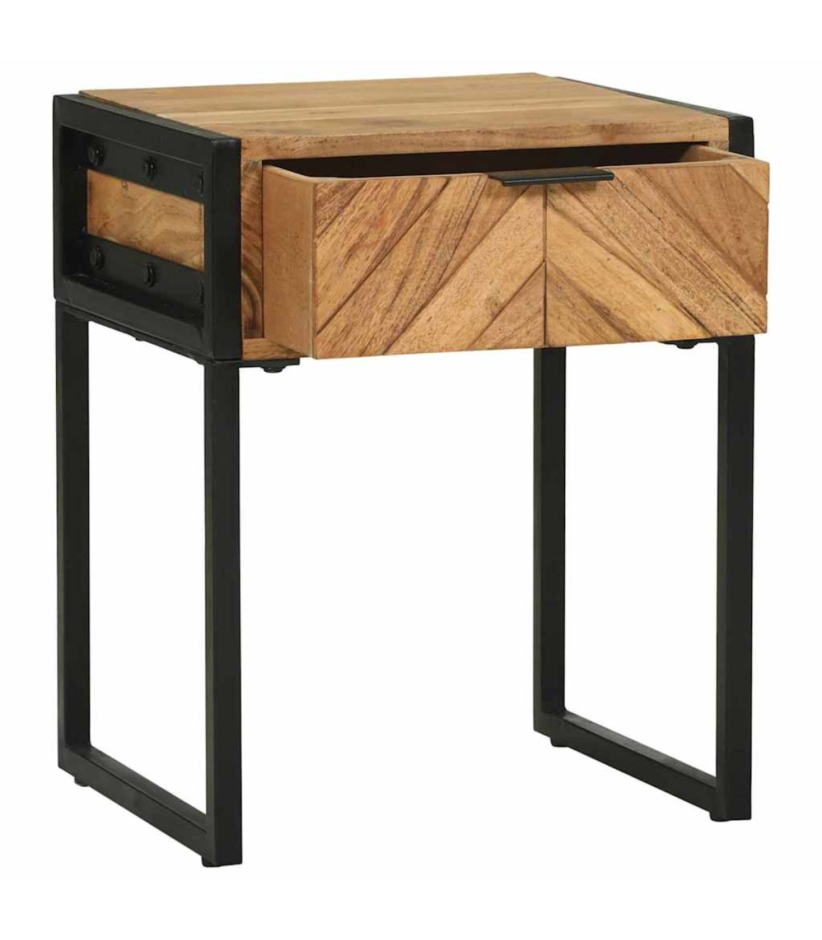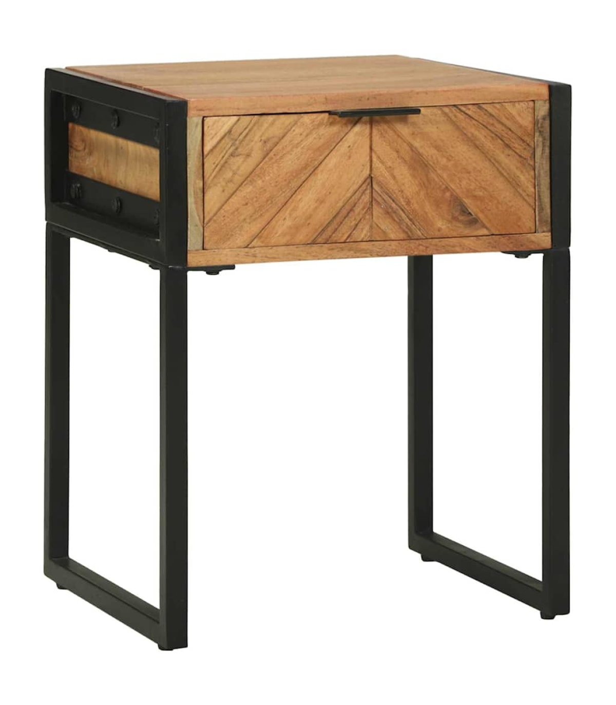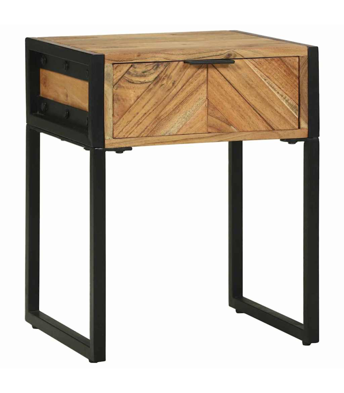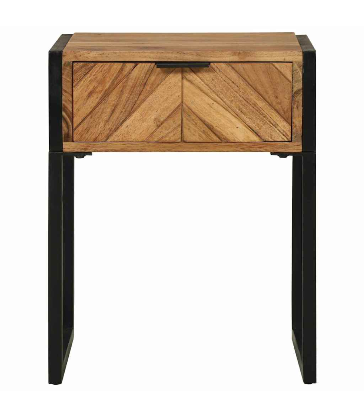 This Industrial Chevron Bedside Table is a stylish and useful addition to any modern bedroom. Its sleek rectangular design is for anyone who digs simplicity and clean lines. Made with solid Acacia wood, its warm brown colour fits in well with loads of different interiors—perfect for holding your night-time essentials like lamps, books, and personal stuff. Whether you're in an urban flat or a cozier space, this table gives you storage and style. High-Quality Solid Acacia Wood With a lovely brown finish, this table is made from top-notch solid Acacia, known for its strength and stunning grain patterns. It can handle daily wear and tear and still looks great for years. Efficient Storage with Drawers The bedside table comes with roomy drawers, perfect for storing everything from books to tech devices. The drawers slide out easily, making it a breeze to keep your bedroom sorted. Modern Rectangular Shape This sleek rectangular shape adds a minimalist touch, matching perfectly with modern styles. Its clean lines look fab and fit right in with contemporary décor. Indoor Exclusive Design Made just for indoor use, this bedside table fits right in with bedroom setups. Its handy design suits a bunch of interior styles, blending looks and practicality. Easy Maintenance To keep it looking good, just give it a quick wipe with a damp cloth to remove dust and fingerprints. This easy upkeep keeps it in tip-top shape for ages.