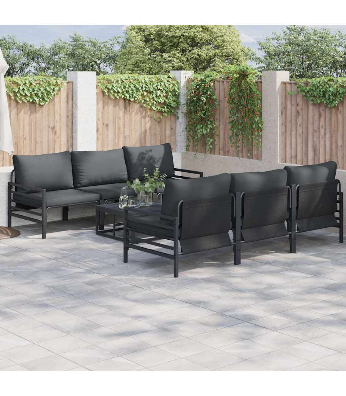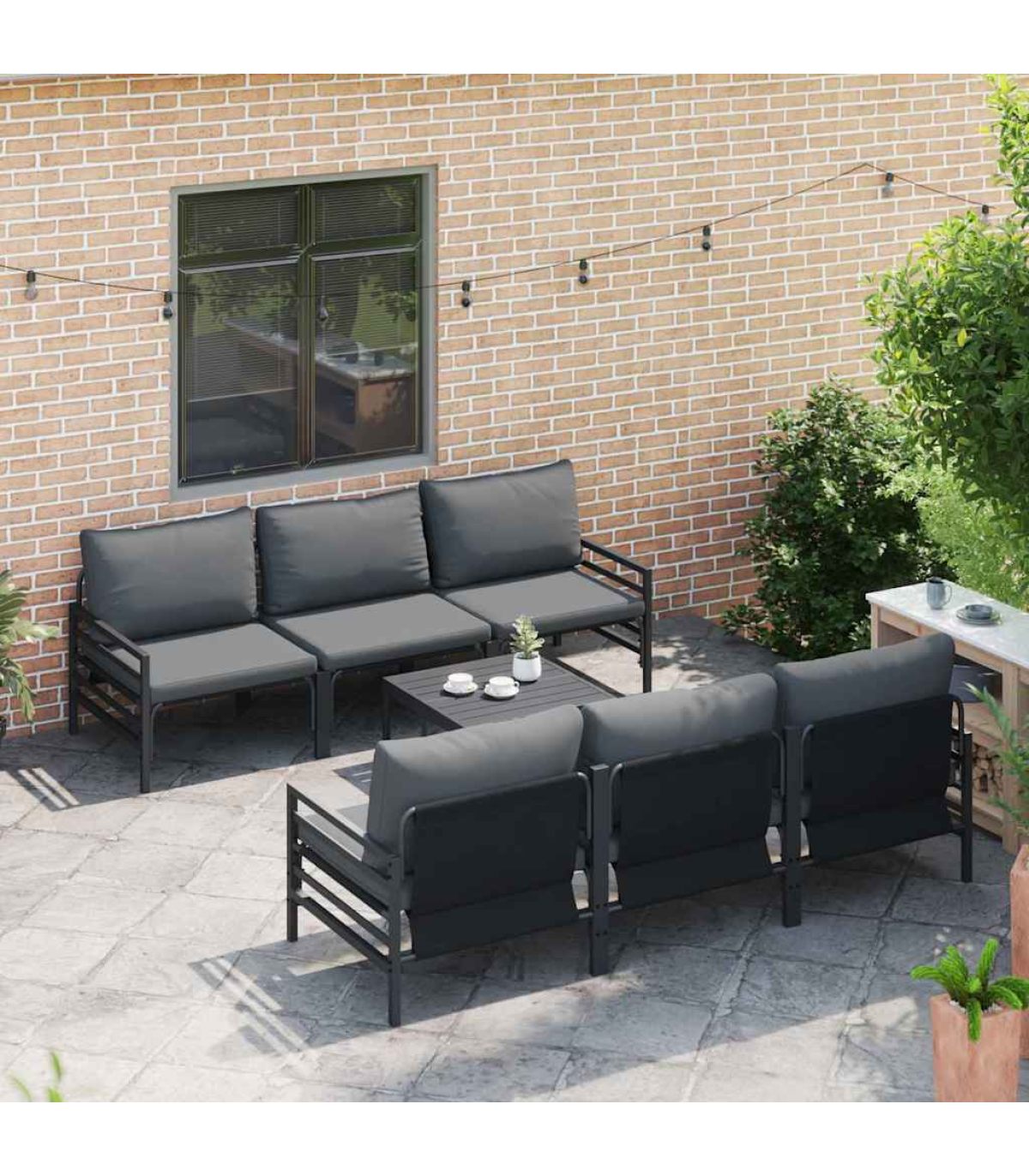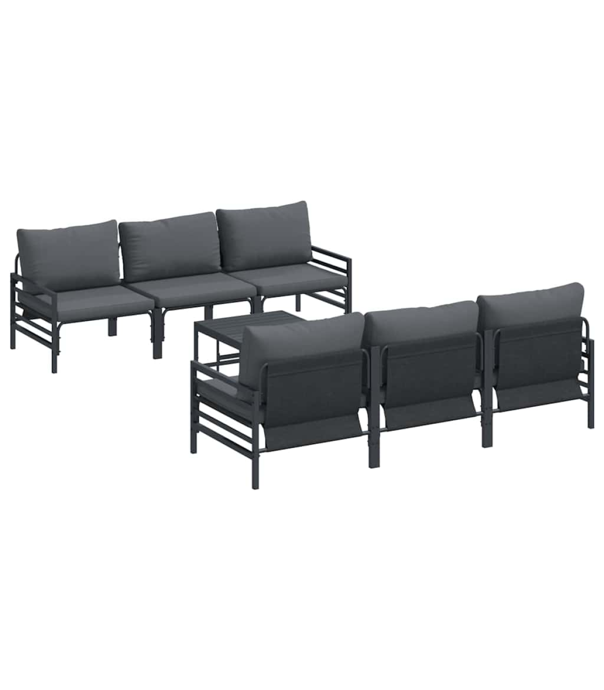 This seating set is a prime example of modern minimalist style, ready to perk up your outdoor space with its sleek lines and handy elegance. Whether it’s for your garden or terrace, it focuses on simplicity, letting nature take centre stage. The modern design easily blends with different outdoor styles, creating a nice spot for gatherings or some quiet time. Picture it under sparkling garden lights or on a lovely sunny day. Materials: The set features a robust steel frame known for its strength and durability, paired with comfy polyester cushions. These materials strike a great balance between long-lasting use and good looks, making it a must-have for any outdoor setup. Included Components: You get four arm sofas, two middle sofas, and one table—it’s all you need for family gatherings or casual drinks with mates. Each piece adds to a seamless experience, with comfy armrests and a handy table for dining or drinks. Features / Function / Design: The modular setup lets you mix and match—expand or rearrange the sofas as you need, just like an artist’s palette. This adaptability is super useful and makes your outdoor space even better. Recommended Uses: This set is perfect for gardens and terraces, fitting any vibe—from lively get-togethers to quiet relaxation. Whether you’re having friends over or enjoying a solo evening under the stars, it’s designed to add comfort and fun to all your outdoor adventures. Care & Maintenance: To keep it looking great, use a waterproof cover in bad weather. The cushions are easy to take off for cleaning, simplifying care and ensuring they last. Just give it a gentle wipe to keep it pristine; no harsh cleaners needed.
