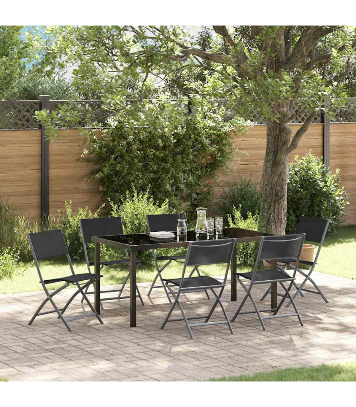 This smart rectangular outdoor set is just perfect for gardens and terraces, offering a modern style with a sleek finish. Ideal for summer get-togethers, the set combines textilene and steel with a powder-coated finish, blending easily with modern home vibes. Designed for enjoying the outdoors, its foldable design makes storage a doddle, perfect for smaller spaces. Textilene and Steel Composition This outdoor set combines the durability of textilene and powder-coated steel, making it resistant to the weather and UV rays. This means you can use it for ages without any damage. Plus, its smooth surface is easy to keep clean and looks fab. Foldable Design With an easy foldable mechanism, this set is a doddle to store and transport. You can easily collapse everything down, making it ideal for those who need adaptable furniture. Tempered Glass Surface The tabletop is made from durable tempered glass, adding a bit of style while being sturdy enough for all sorts of activities. The smooth surface is a breeze to clean and boosts the overall look of the set. UV Resistant and Durable This patio set is built to withstand sun exposure without losing its colour. The UV resistance guarantees it will last for ages while maintaining its integrity over time. With the powder-coated finish, it’s protected against tough outdoor conditions. Simple Maintenance Keeping the set in good shape is easy. Using a cover when it’s not in use helps protect it and extends its life. The powder-coated steel frame needs minimal care, so you can enjoy it without a fuss. Maximum 110 kg per seat.