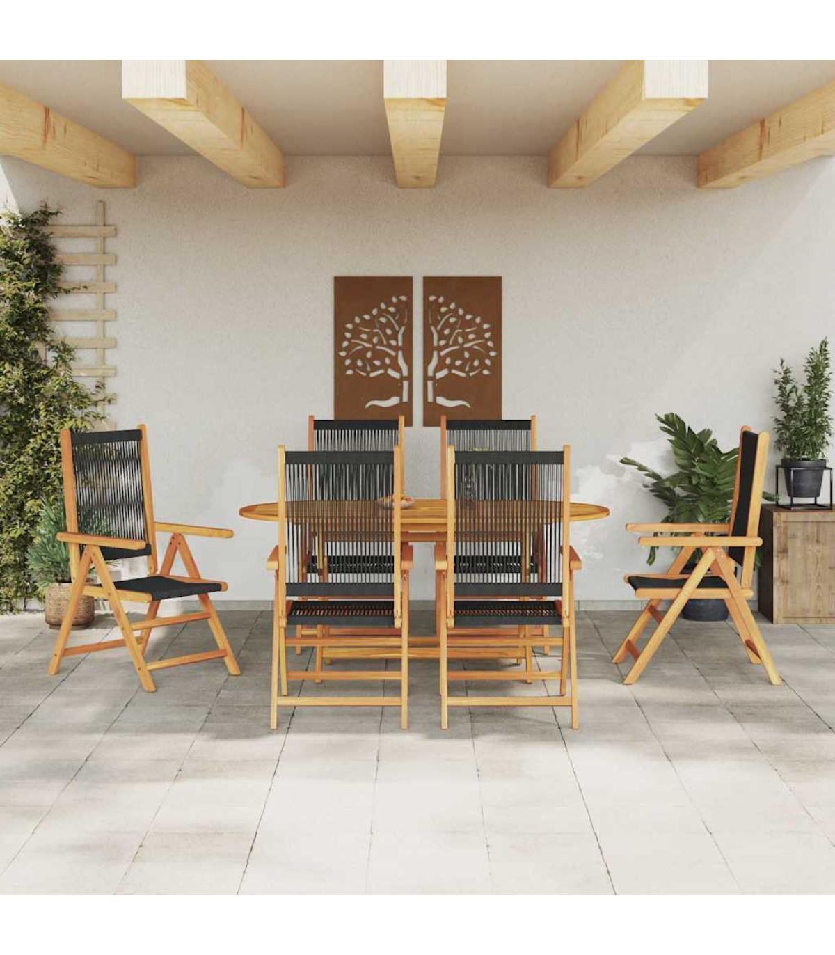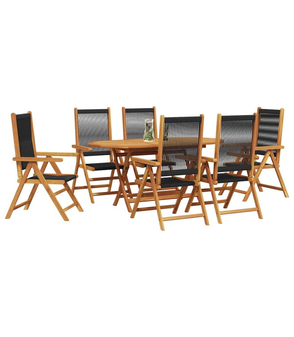 This Garden Dining Set is spot on for outdoor meals, whether it's with family or friends. With its trendy feel, smooth texture, and oval shape, it looks great in any garden. Its rich brown colour blends in nicely with nature. You get style and function all in one, providing a lovely space for alfresco dining, no matter where you set it up. Top-Notch Materials: Made from solid acacia wood and poly rattan, this dining set is built to last. The wood is oiled to protect against moisture and bring out its natural colour. Perfect for the outdoors, these materials give off an earthy vibe that makes any garden pop. What's Included: The set comes with sturdy armrests that match in brown, giving it a unified look. The poly rattan backrest adds comfort for those long chats over dinner. The solid legs made from acacia wood make sure it’s stable even on uneven ground. Handy Features: The foldable design means the table and chairs can collapse down for easy storage or transport. This makes it very versatile for seasonal use or moving around your outdoor space. Multi-Use: This set is great for gardens and terraces, perfect for summer parties, afternoon teas, or dinner under the stars. It's flexible, suiting both casual and formal events effortlessly. Care & Maintenance: Keeping it looking good is easy; just wipe it down with a damp cloth. Use a cover when it's not in use to protect it from the elements and make it last longer. This way, you can enjoy dining outside year after year. Maximum 110 kg per seat.