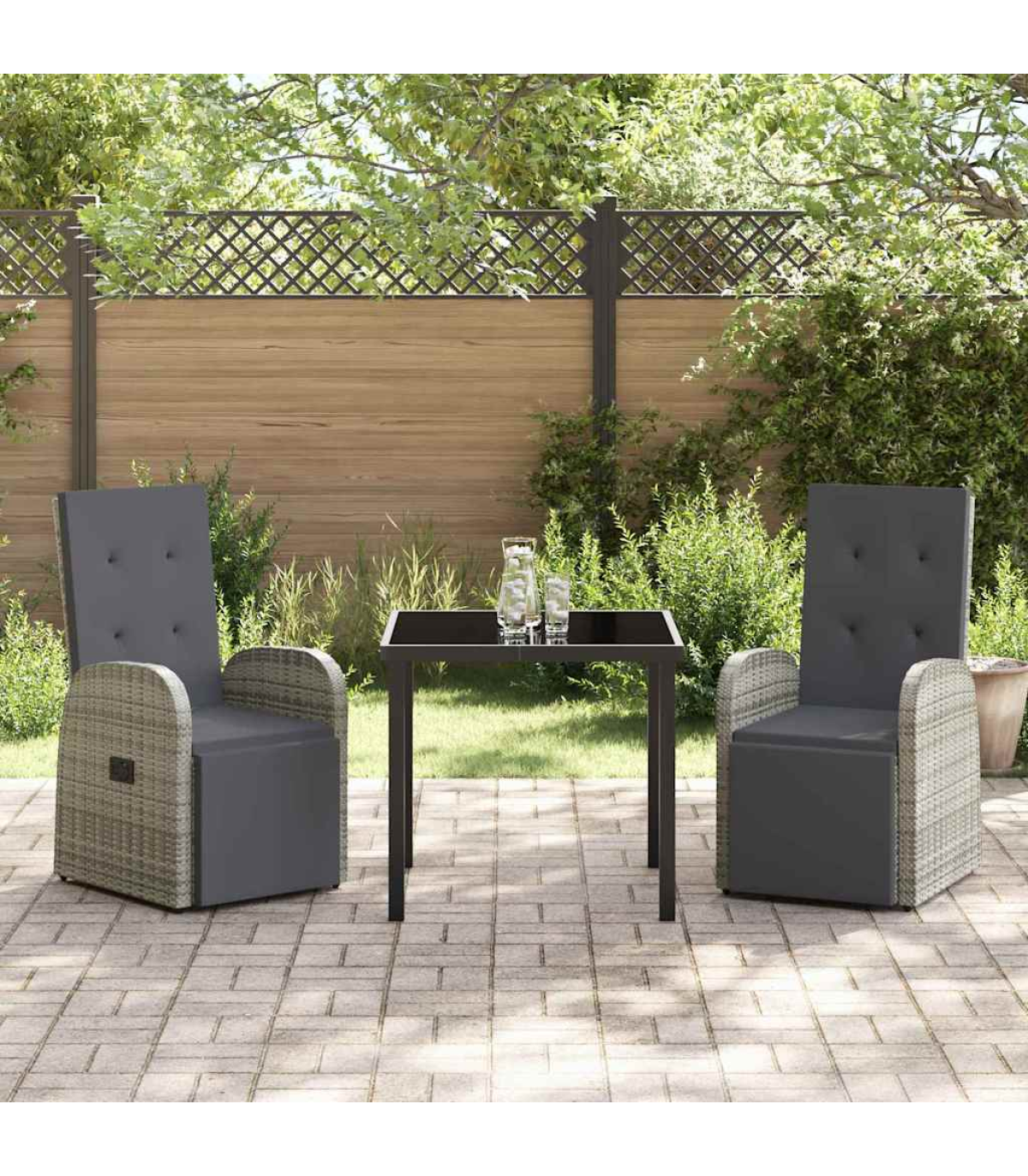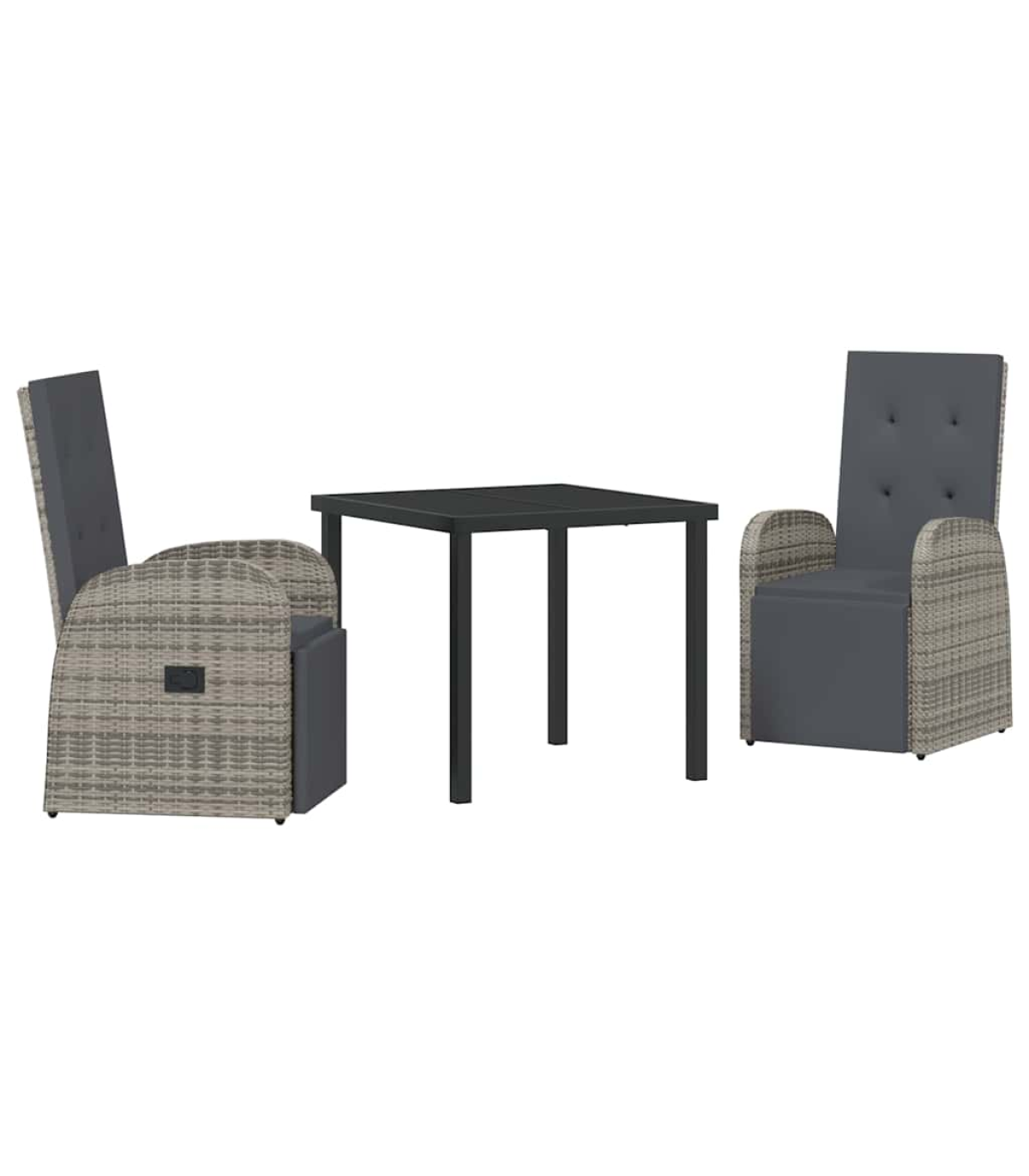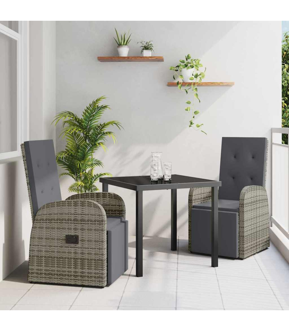 This modern reclining outdoor set turns your garden or terrace into a cool place to kick back. With its sleek lines and minimalist look, it's perfect for those who love a mix of style and comfort outdoors. The design works well for anyone wanting a chill spot outside. The lovely textures and soft colours bring a bit of elegance to your patio, creating a relaxed atmosphere for reading, relaxing, or hanging out. Textured Woven Design: The set’s stylish poly rattan weave looks fab and stands up to the weather. It's UV and water-resistant, so it stays looking good without much fuss, adding lasting style to your outdoor hangout. Functional Armrests: The curved armrests are made from poly rattan to give you proper support, making it comfy even when you're sitting for a while. They merge form and function, taking your seating experience to a whole new level of chill. Tempered Glass Elegance: The glass table top is not just tough, it also looks modern and sleek. The shiny finish adds to the whole look, making it a centrepiece in your seating area without skimping on practicality. Adjustable Recline: The backrest can be adjusted to suit how you want to sit. Whether you're stretching out with a book or chatting with mates, you can find the perfect comfy spot for every outdoor moment. Effortless Maintenance: The cushions are removable for easy cleaning. Just a quick wipe down now and then keeps the set looking sharp, making it a convenient and stress-free seating solution.