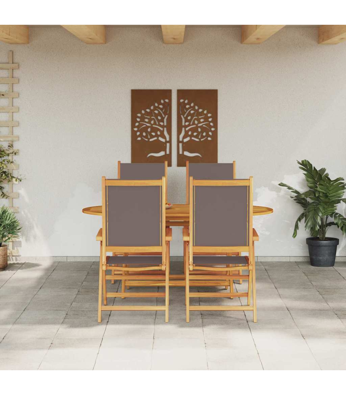 Walking into your garden or terrace becomes a joy with this fab outdoor furniture set. Great for summer get-togethers or just relaxing, its modern design aligns with what’s trendy while creating a comfy vibe. The smooth finish boosts its look, making your outdoor lounge all the more inviting. This set adds style and comfort, making it just right for entertaining mates or enjoying some peaceful time, which is why it’s a must-have for any outdoor retreat. Material Excellence: This furniture set is crafted from solid acacia wood and polyester, blending natural goodness with modern craftsmanship. Acacia wood is tough and stands up to the elements, making it great for outdoor use. The polyester seat and back give comfy support and add to its stylish vibe. Inclusive Design: With armrests, backrests, and foldable chairs, it’s all about function and style. The wooden armrests provide a comfy place to rest your arms, while the sloping backrests follow the natural curve of your body, upping the comfort level. The foldable chairs are a win for easy storage or transport. Convenience at Core: This furniture set folds away, making it super easy to store and transport. It’s perfect for those with limited space or anyone having larger gatherings. Its practical design means you can quickly tuck it away when it’s not in use, and have it ready to go whenever you need it. Visual Harmony: With its modern style, the set fits right in with any contemporary decor. The polished finish adds a touch of sophistication, making it a versatile pick for your garden or terrace. Easy Maintenance: Keeping this set in tip-top shape is a breeze. The sturdy materials ensure it lasts, and a quick wipe down with a damp cloth usually does the trick for cleaning. A protective cover during harsh weather will help it last even longer.