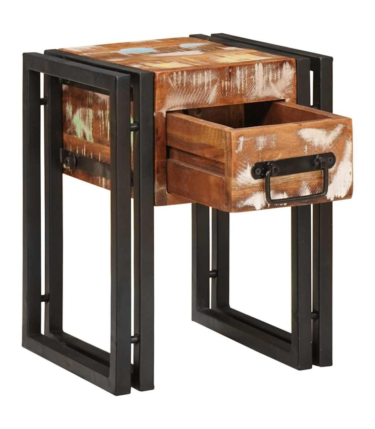 This End Table with Storage is all about combining industrial style with practicality, making it a versatile addition to your living area. The sleek rectangular design and rustic textured finish give it a modern feel, all while being super functional. It's compact enough to fit right in, giving you plenty of space to show off a lamp, stash some books, or keep a drink close after a long day. Industrial Design: This end table has a strong rectangular shape with an urban loft-inspired vibe that's both useful and stylish. The powder-coated iron frame adds a modern touch while ensuring it's solid and durable. It brings a fresh look to any space. Ample Storage: With loads of storage, this table makes it easy to keep your essentials in check. The spacious compartment fits magazines, remotes, and other daily things, so your living area stays neat and calm. It’s a handy solution for modern living. Tough Materials: Built from strong iron, this table is tough enough for everyday use. The mix of handmade details and a powder-coated surface creates an attractive but sturdy finish, ensuring it’s a long-lasting addition to your furniture. Easy Maintenance: Looking after this table is a doddle thanks to its strong materials. Just give it a wipe with a damp cloth to keep the dust away and maintain its fresh look. This hassle-free care gives you more time to enjoy it. Simple Assembly: All you need is a screwdriver and an extra pair of hands to put it together. The well-made components fit together easily, resulting in a stable and strong table. This simple assembly highlights the clever design behind it.